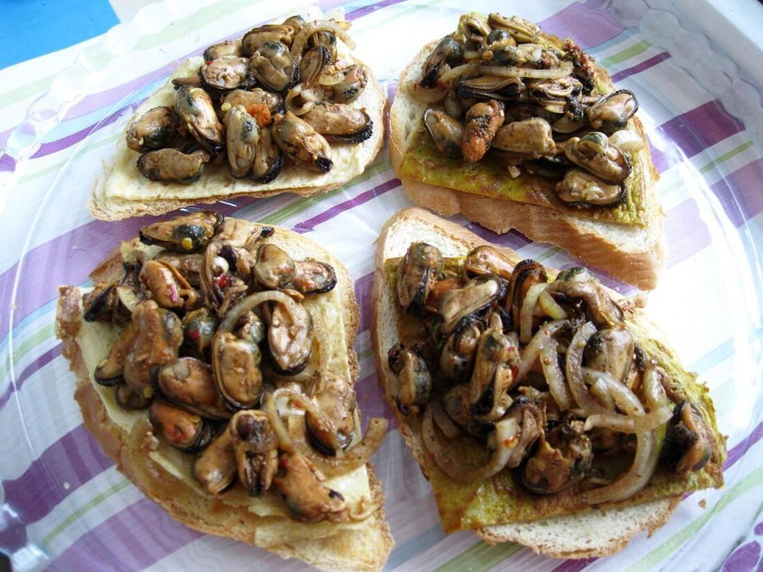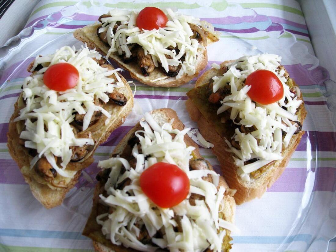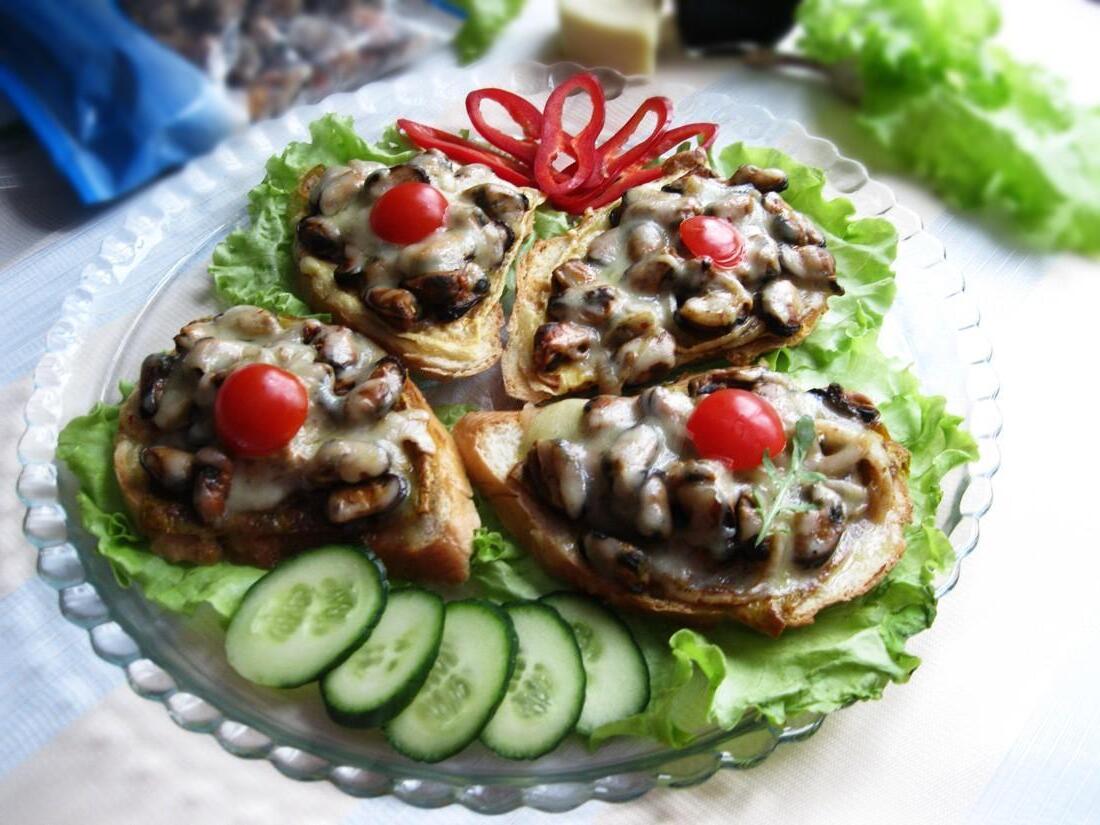 Delicious mussel sandwiches on crispy garlic bread! Healthy and satisfying dinner. Easy to prepare! You can surprise your neighbors. You can take it with you to work for a snack. Looks beautiful on the holiday table!