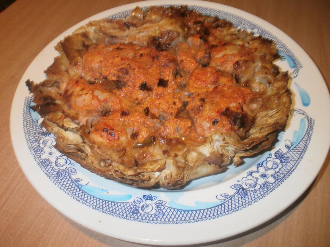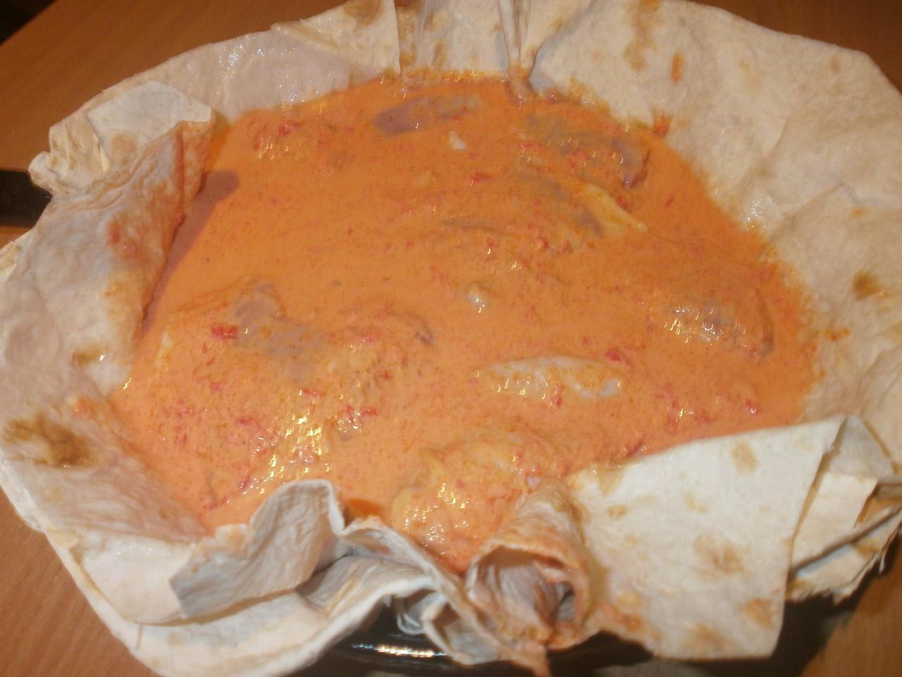 This dish will delight you not only with its taste, but also with its beautiful unusual presentation. Besides, everything is very simple. And personally, I was pleasantly surprised by the lavash. It took the shape of my frying pan and it turned out to be a huge tartlet. And when they told me that in this recipe it is not yet known whether the chicken or the pita bread soaked in sauce is tastier, I didn’t believe it. And in vain. In a word, I liked everything. I’ll be glad if you like it too.