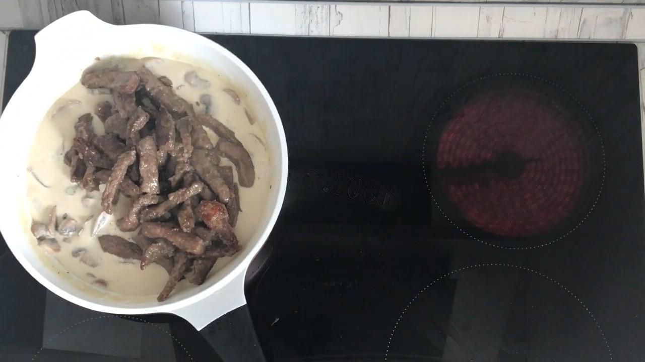 An excellent dish of beef with mushrooms for any side dish. Instead of champignons, you can use any mushrooms. It will be especially delicious with chanterelles.
