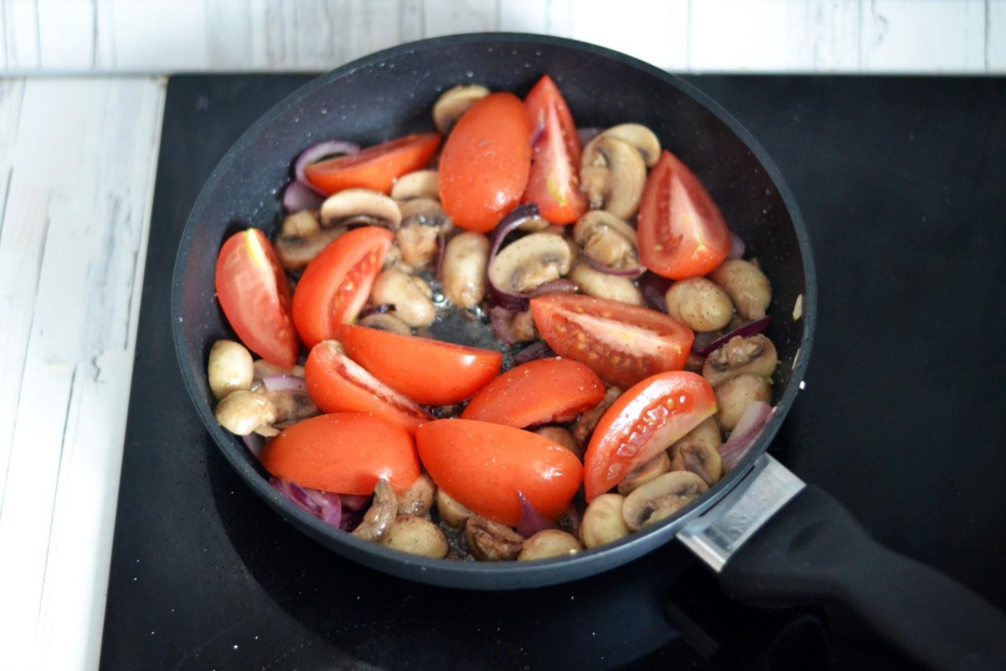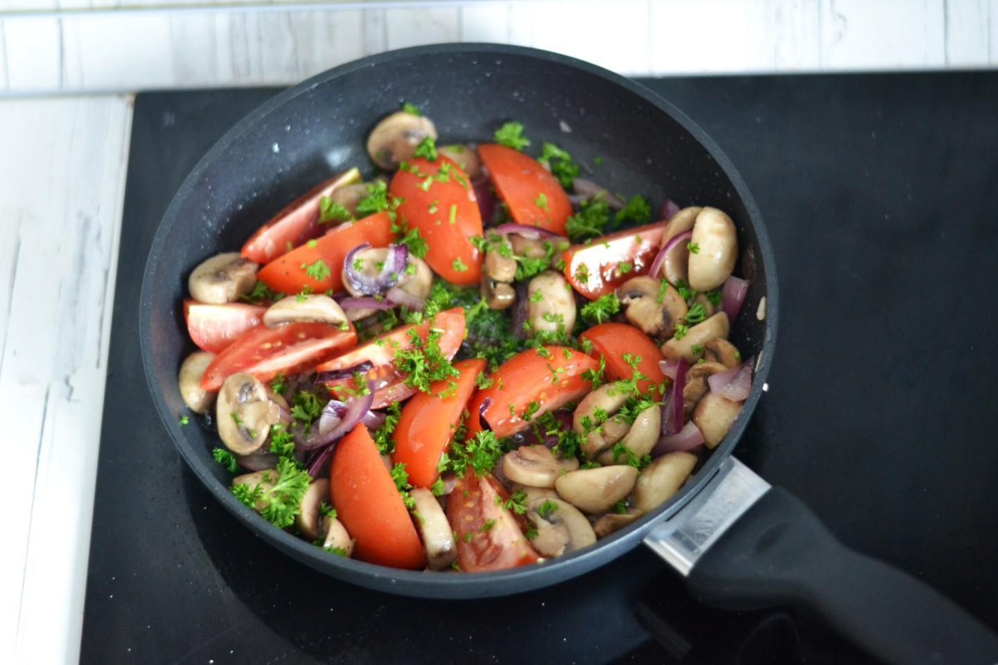 A versatile base for a quick and easy dinner! Fried mushrooms with tomatoes, red onions and garlic are a great addition to many main dishes and side dishes. They are best served hot or warm. And if you add mozzarella in mini balls, you get a tasty and satisfying salad.