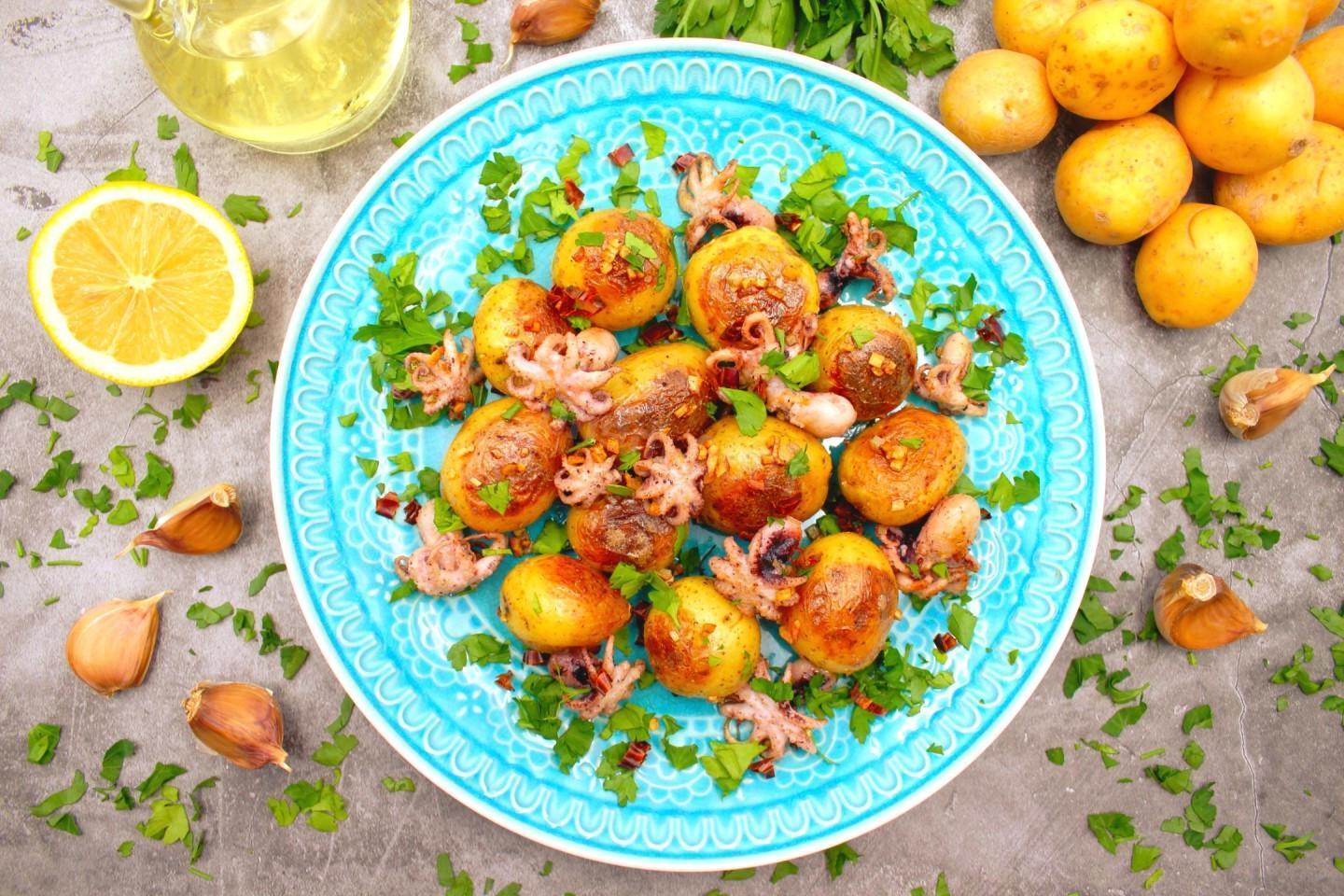 Pan-Fried Mini Octopuses with Potatoes