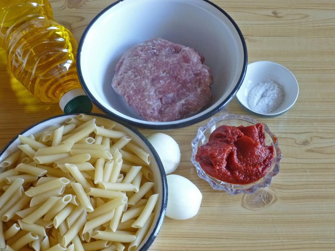 A delicious pasta dish with minced meat in just half an hour. It is better to prepare minced meat for this dish yourself, but store-bought minced meat is also suitable, only it should be finely ground. The tastiest way to prepare such pasta is from assorted minced meat. Tomato paste gives the dish a more expressive and rich taste. The dish is inexpensive, quick to prepare, filling, and, of course, very tasty.
