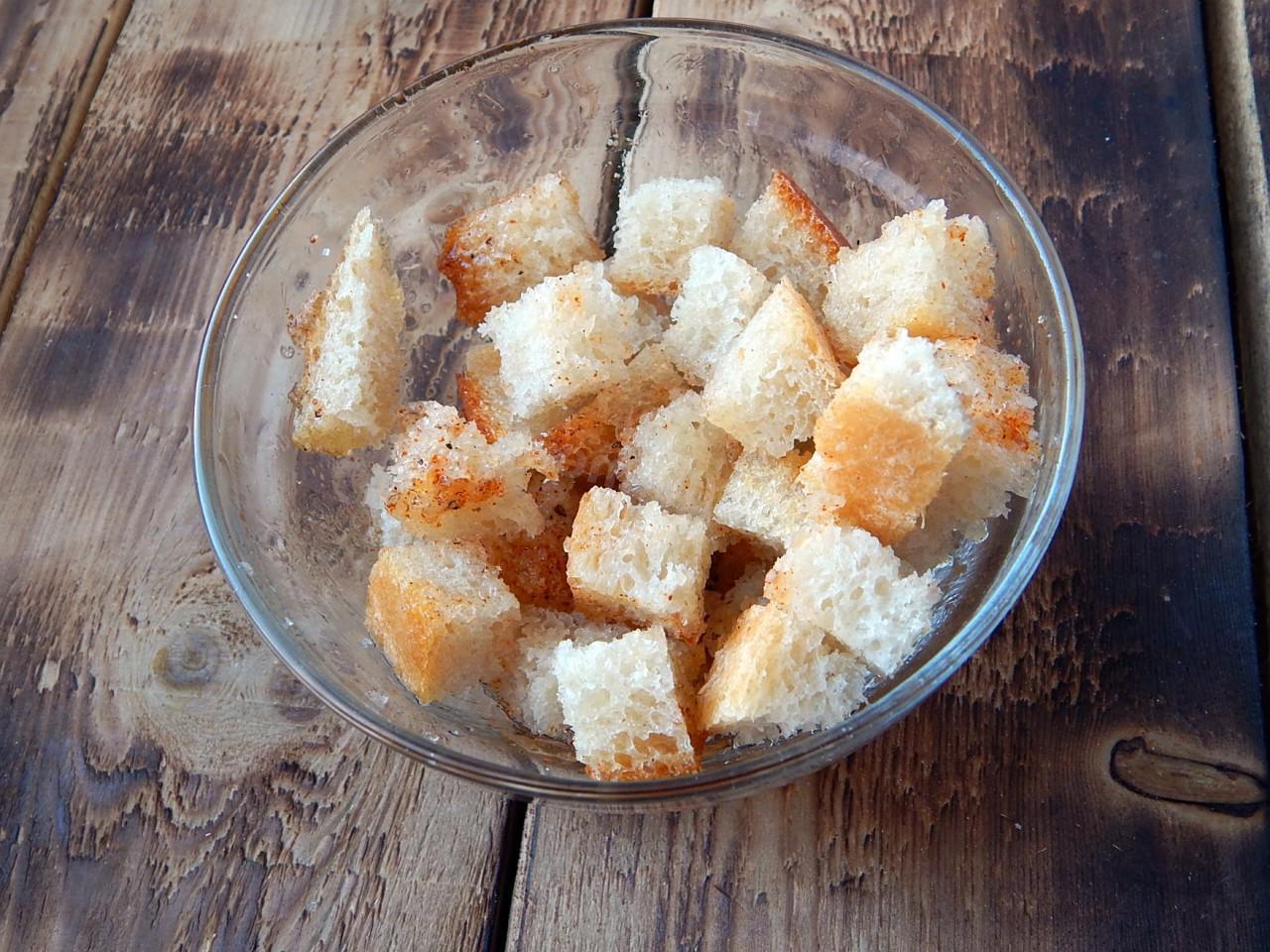 A simple and tasty snack for beer or a fragrant, crunchy addition to salads and soups! Fried white croutons with paprika and garlic are suitable for a holiday salad, for a cheerful, noisy company gathered at home with beer while watching sports programs. After all, with the addition of these croutons, almost any dish and drink (beer) acquires a complete and pleasant taste and aroma.