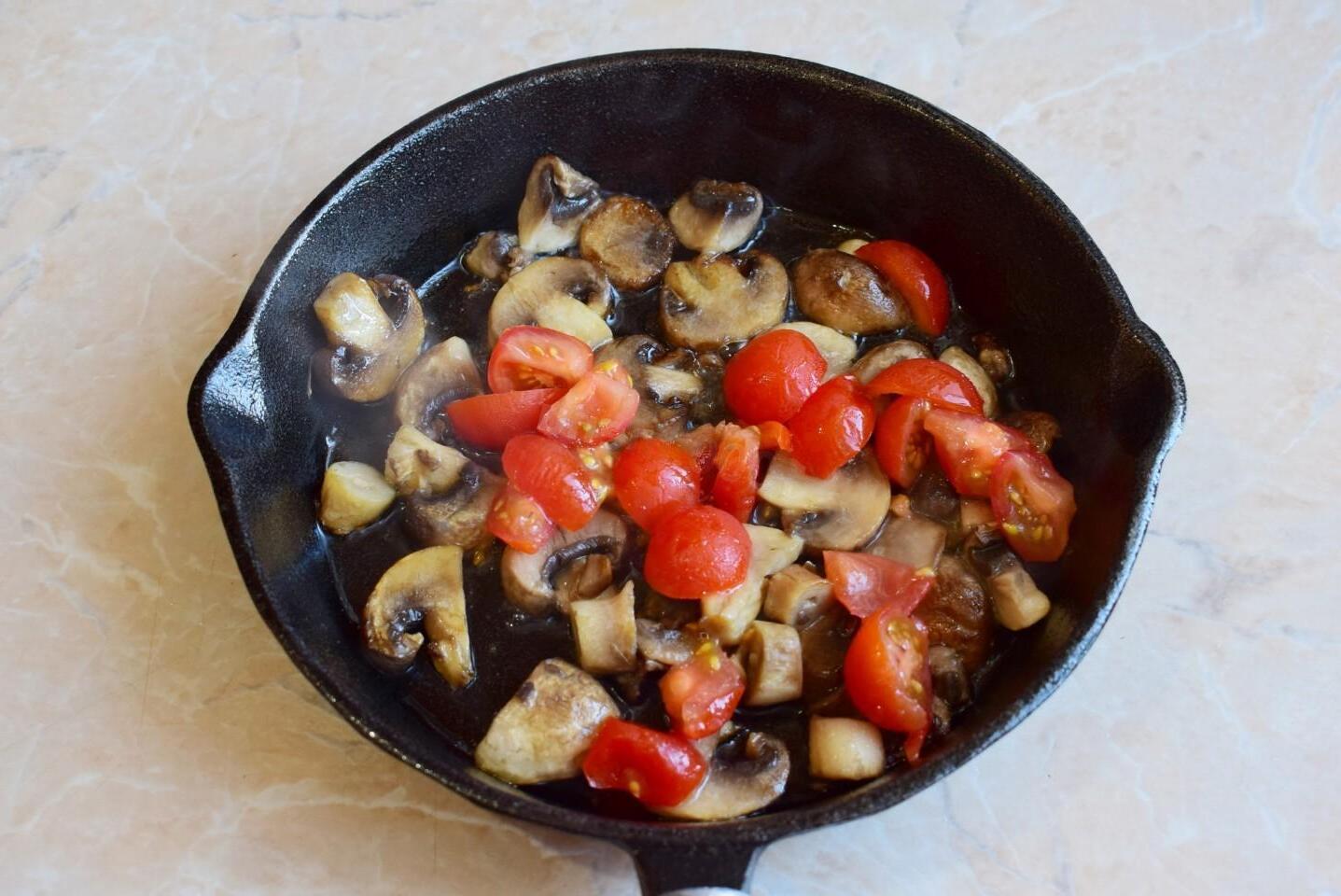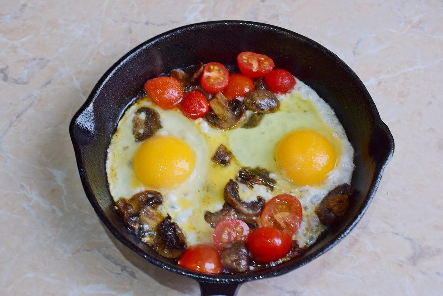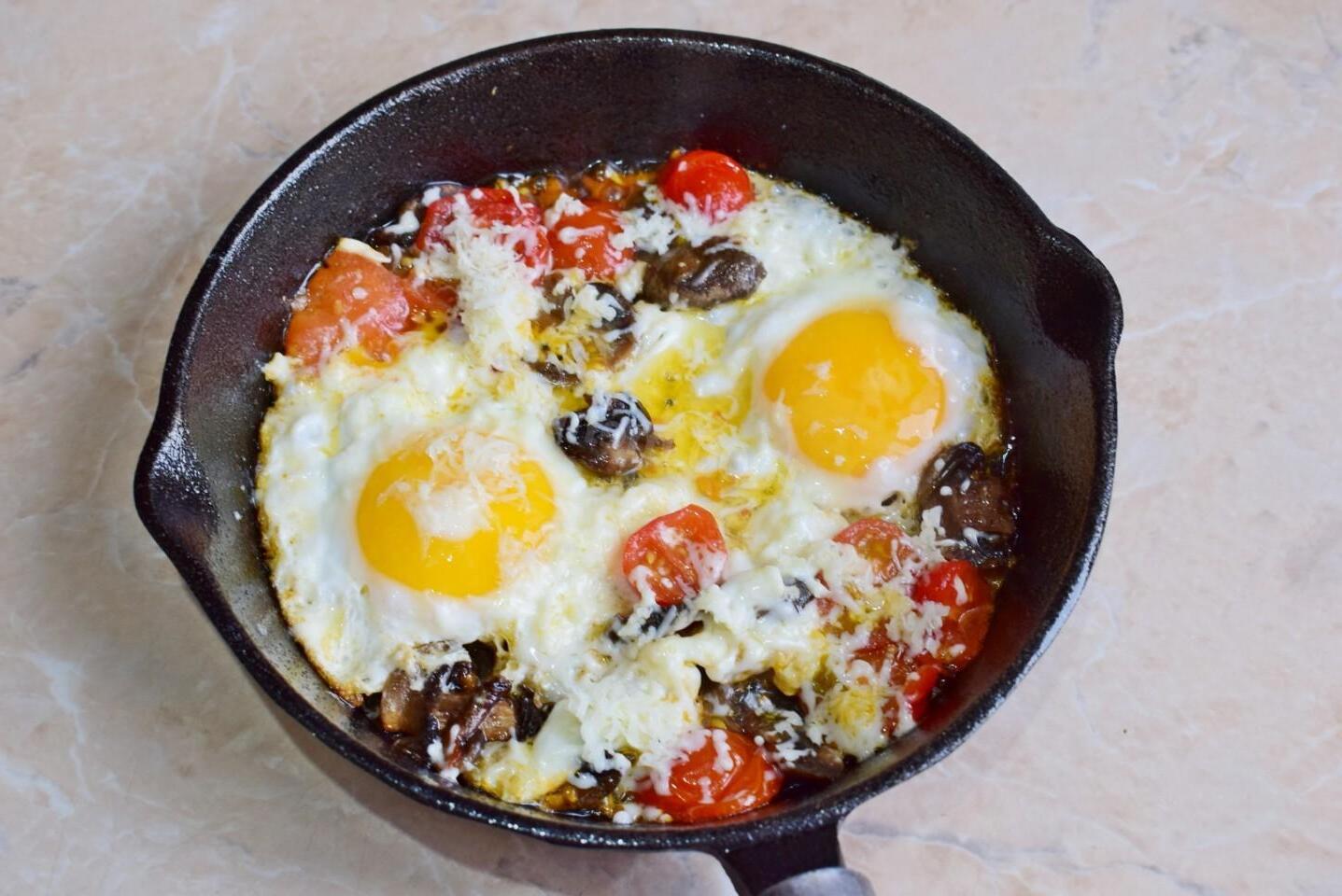 Cheesy Mushroom and Tomato Scrambled Eggs