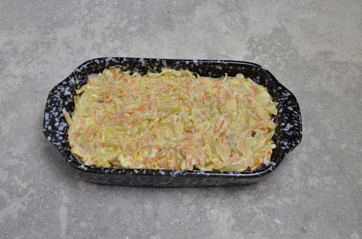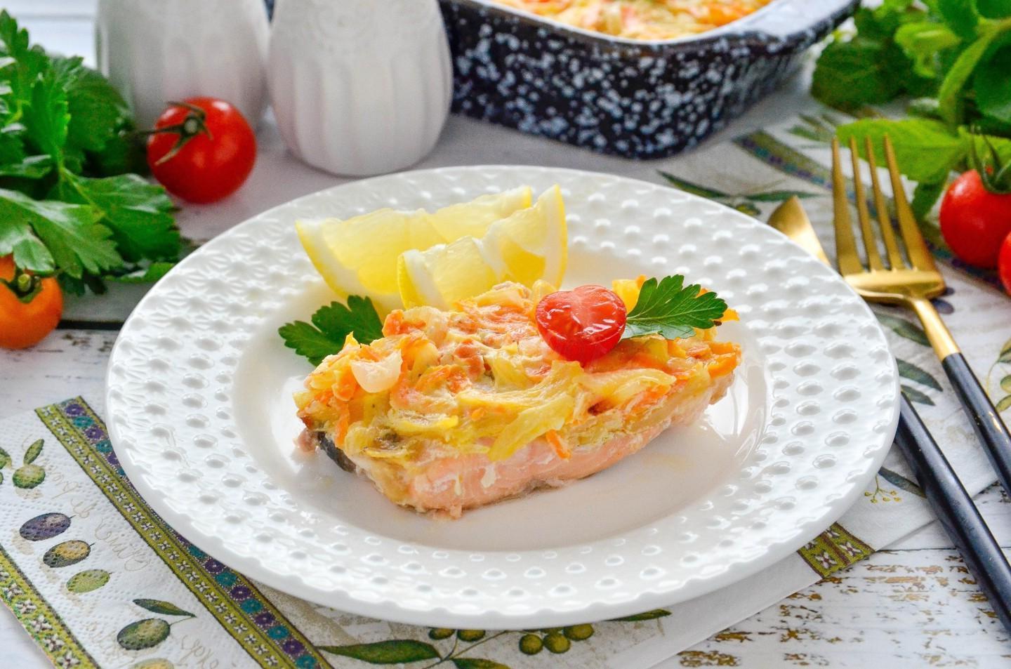 Baked Pink Salmon with Carrots and Onions