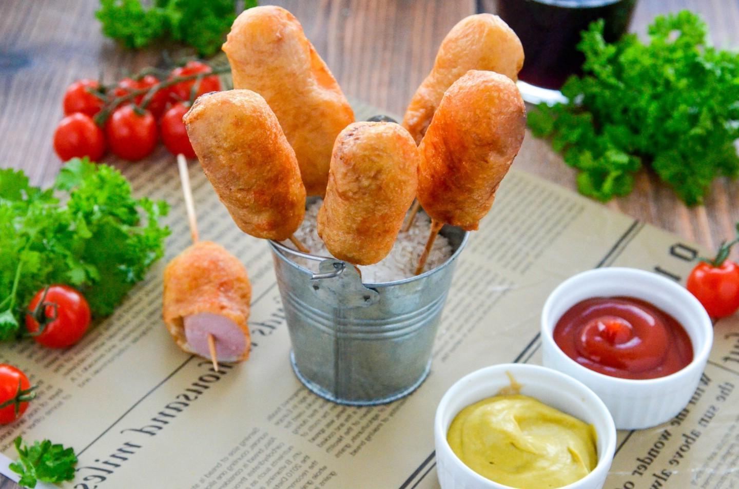 A delicious, impressive appetizer or snack for the whole family! Sausages in batter on a stick will please everyone not only for their taste, but also for their appearance. Preparing them is not difficult, and you can fry them without a deep fryer, in a regular pan. This dish will perfectly diversify your usual menu.