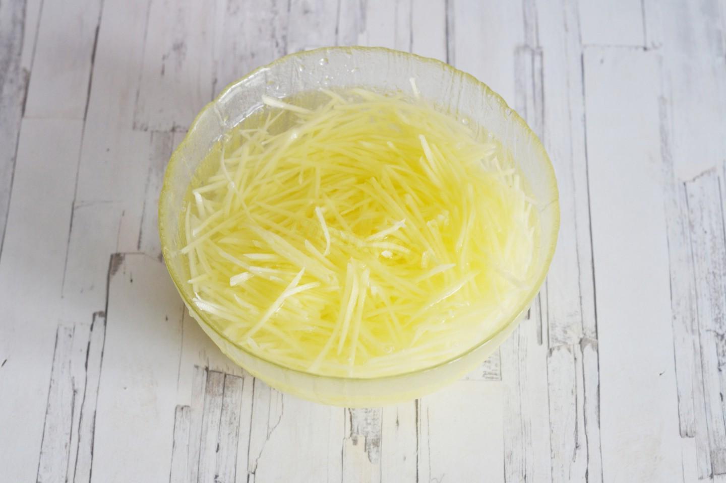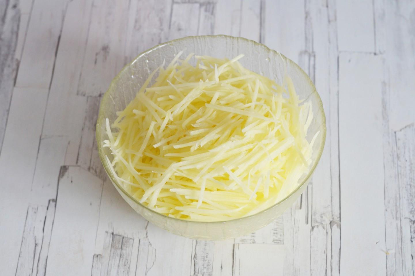 Pair with steak and beer for a great appetizer! Potato pie is an interesting alternative to potato chips or French fries. These are small, crispy potato strips that are deep fried. You can choose the degree of roasting of the straws according to your taste: from pale golden to brown.