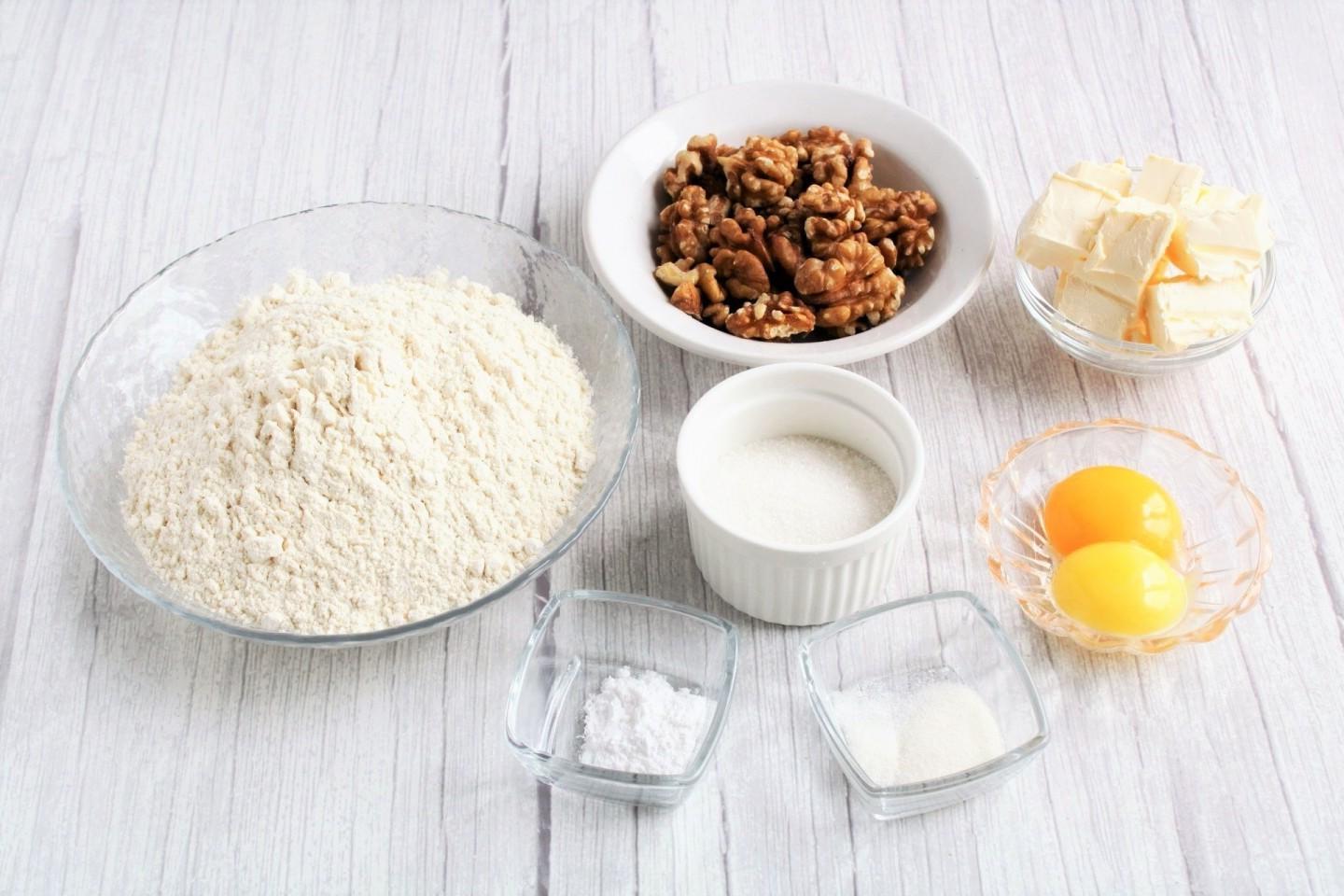 Sandy, crumbly, fragrant! From simple ingredients! Making nut cookies is very simple and doesnʼt take much time. The most common products for shortcrust pastry are always available in every kitchen. And you can take any nuts that you like best: walnuts, peanuts or hazelnuts.