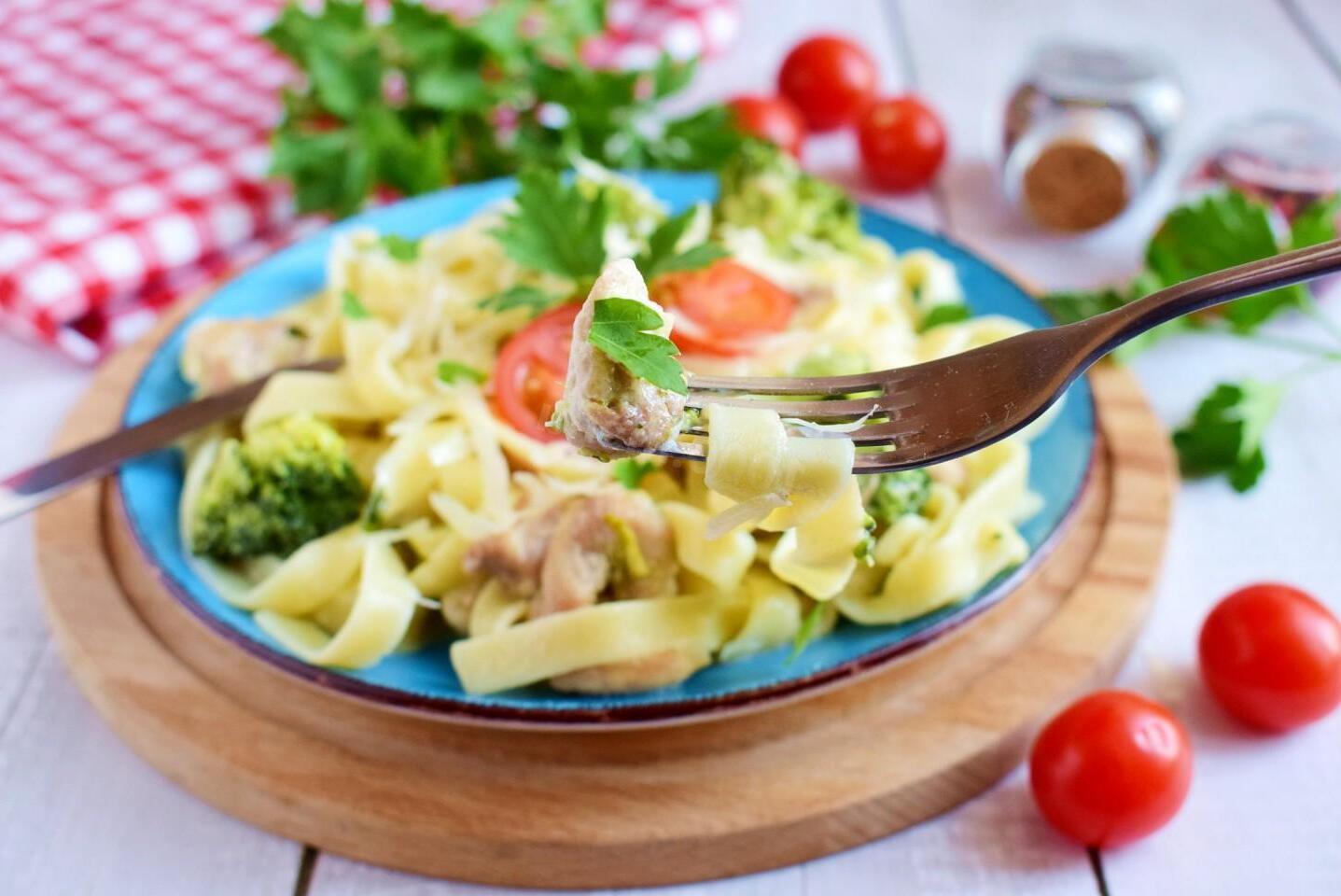 Fast and tasty! Delicious and easy! For dinner, for the whole family! Broccoli pasta in creamy sauce with chicken takes no more than half an hour to prepare. This is the perfect quick meal, filling and delicious. The combination of poultry, vegetables and cream is very successful here. Can be served on its own or with light salads.