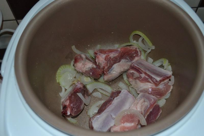 Cooking braised ribs in a slow cooker is a pleasure. Braised ribs in a slow cooker turn out incredibly tasty, although nothing special is added to them! The process of frying the onions and ribs should take you 10 minutes. Frying takes place with the lid of the multicooker open, it acts as a frying pan, and then the “stew” mode.