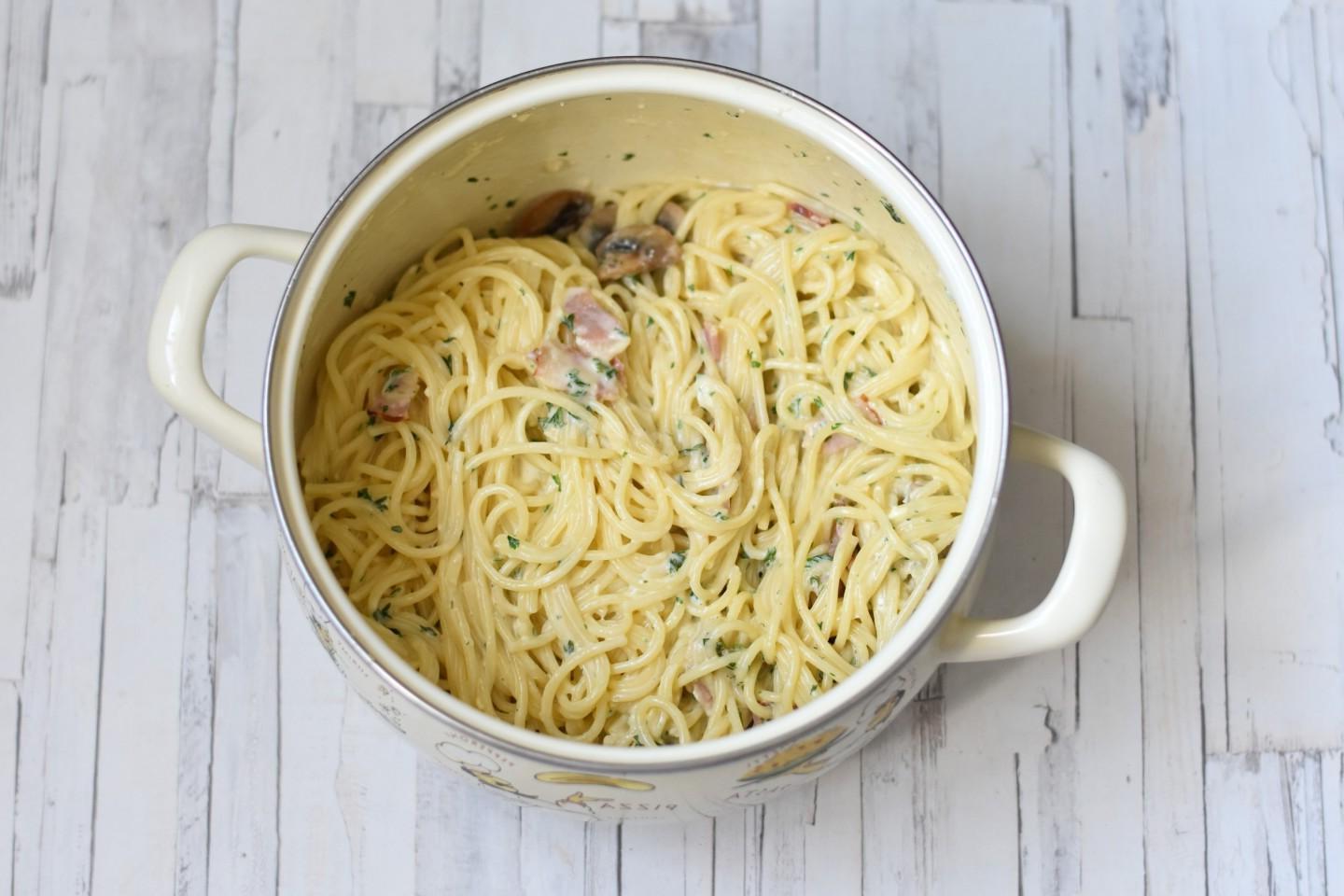 Creamy Mushroom Bacon Carbonara