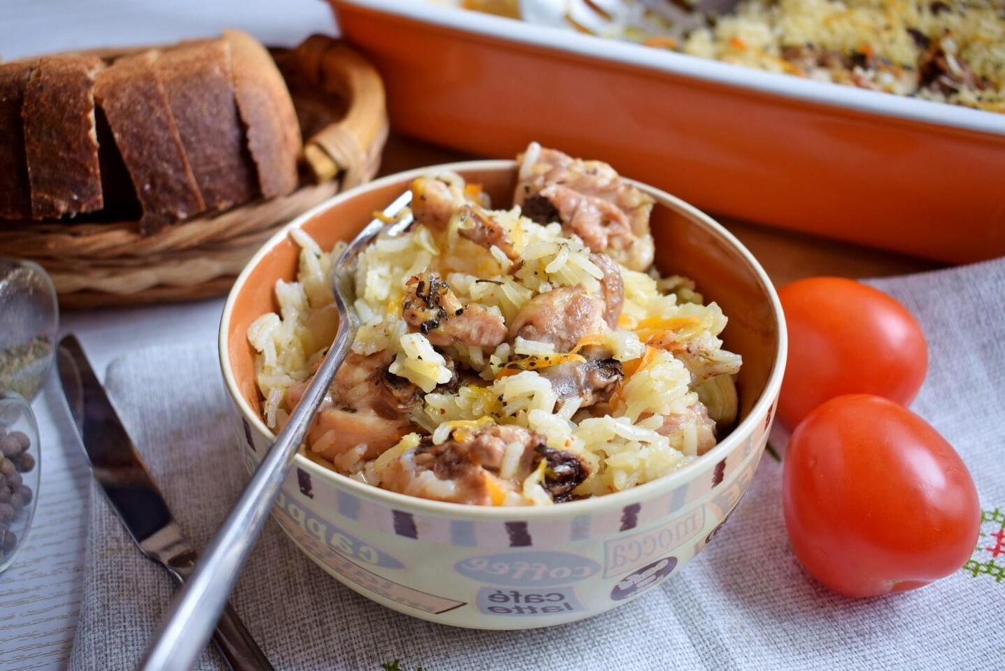 Very tasty, made from simple ingredients, a quick dinner for the family! Pilaf in the oven with chicken will win your heart with its ease of preparation. The work here is 20 minutes, no more, the oven does the rest for you. You can cook with any meat or mushrooms, turning the dish into an absolutely lean, vegan one.