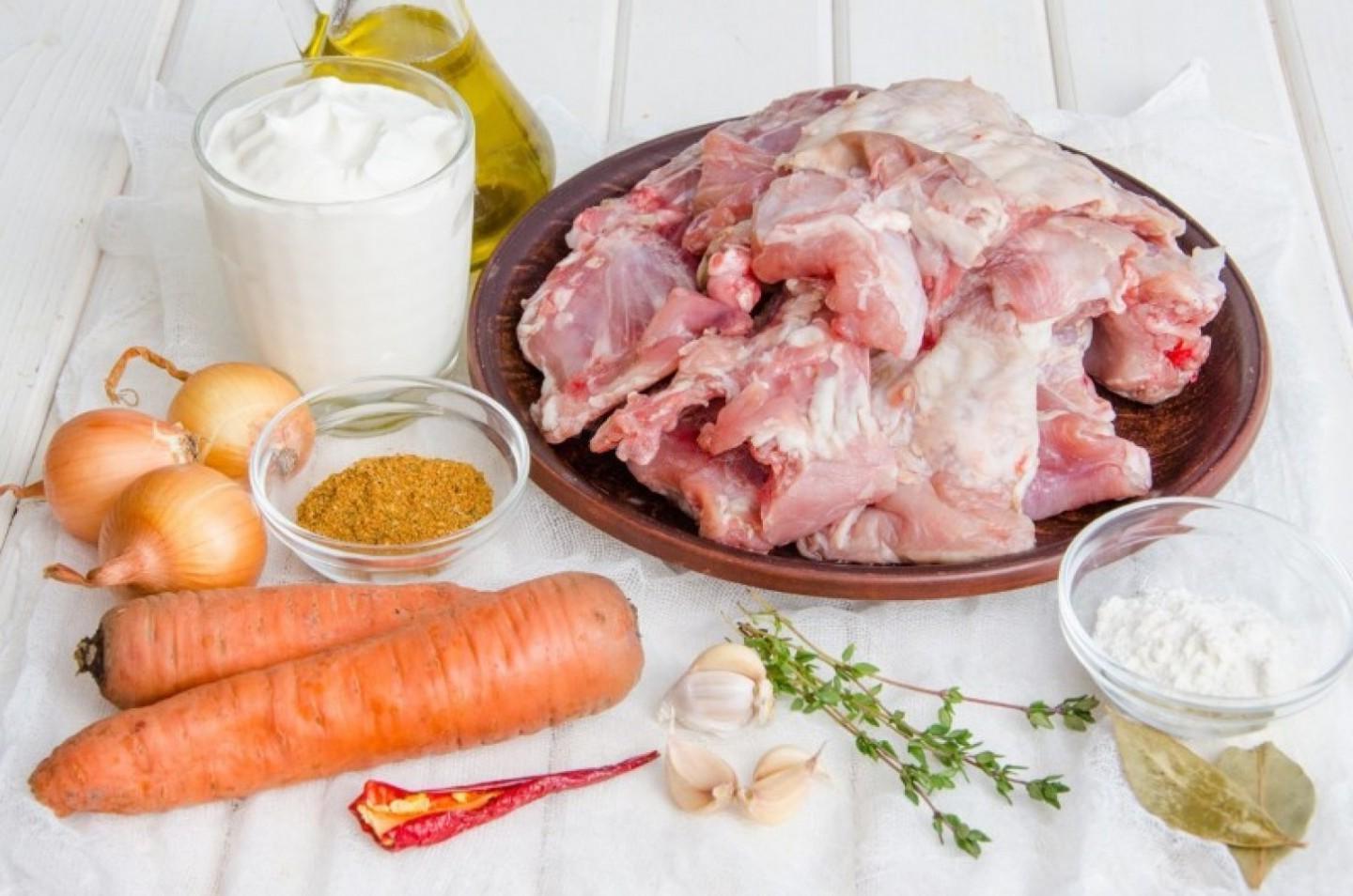 Prepare a delicious and satisfying lunch for the whole family! The rabbit turns out very tender, juicy and aromatic. You can serve it with tender mashed potatoes or couscous. And if you want a lighter version of the dish, then serve a large portion of light vegetable salad instead of a side dish. If desired, if there is no multicooker, then such a rabbit can be safely cooked on the stove in a cauldron or stewed in the oven in a mold with a lid. My multicooker Binatone MUC-2180 with a power of 1300 W.