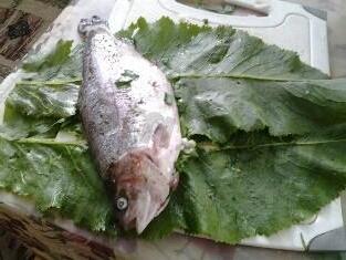 Baked Trout Wrapped in Horseradish Leaves