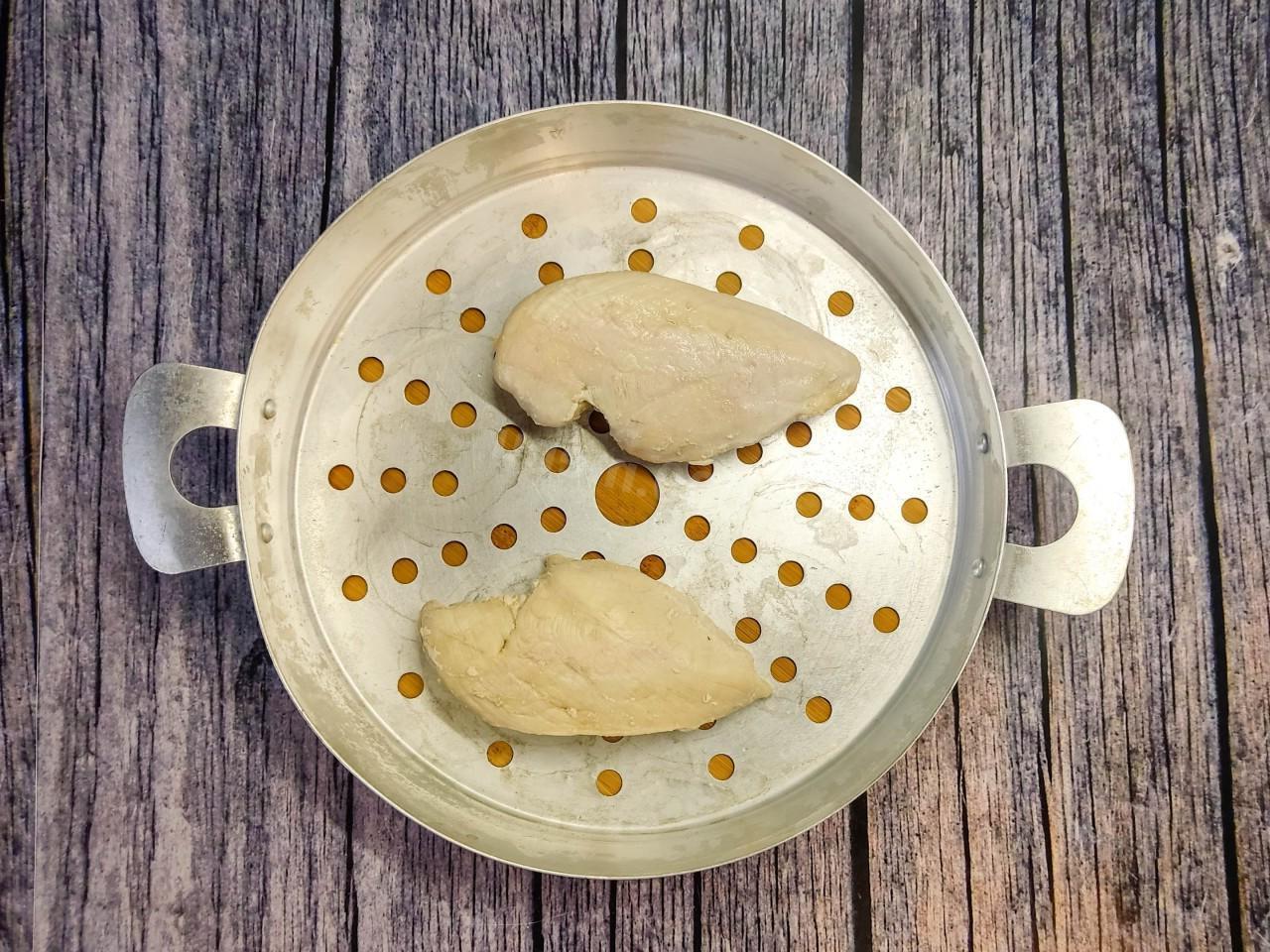 An excellent choice for those who watch their figure! Steamed chicken breast is easy and quick to prepare. No oil and no salt. Suitable for any diet. When hot, it goes well with boiled vegetables. When cold, you can add it to light salads.