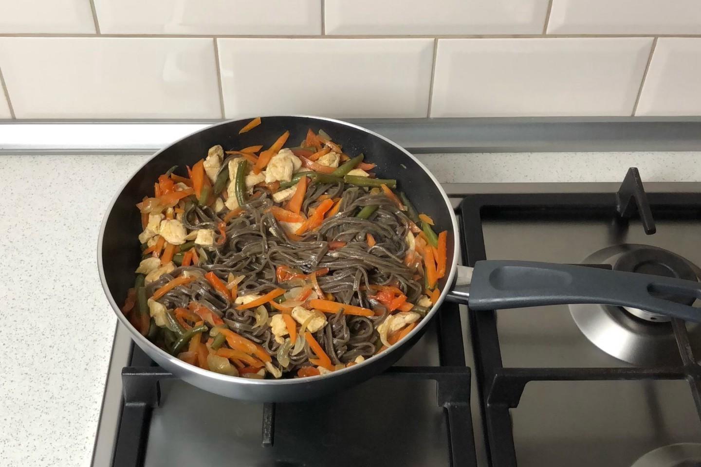 A bright, spicy, light buckwheat noodle dish! Soba, as buckwheat noodles are called, is a healthy and dietary product. It contains fewer calories, unlike regular noodles, and is rich in vitamins and microelements. But above all, it is very tasty, especially when combined with vegetables and chicken.