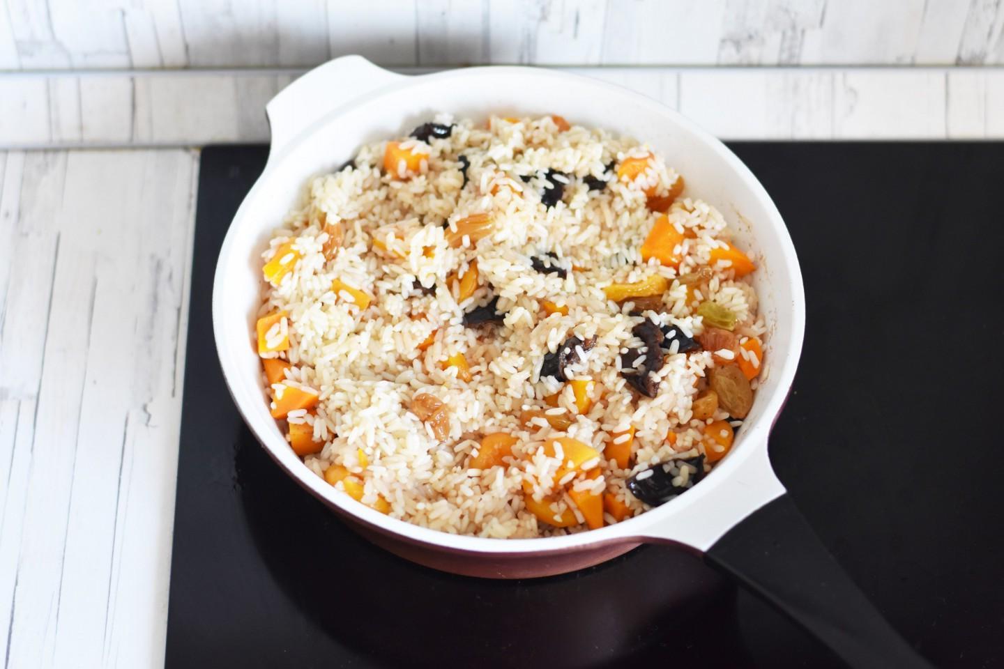 Bright, appetizing, very tasty and easy to prepare! You can serve sweet pilaf with raisins, dried apricots and dried fruits for lunch and dinner. The child will definitely like it! The aromatic dried fruits in it go well with fluffy rice and spices.