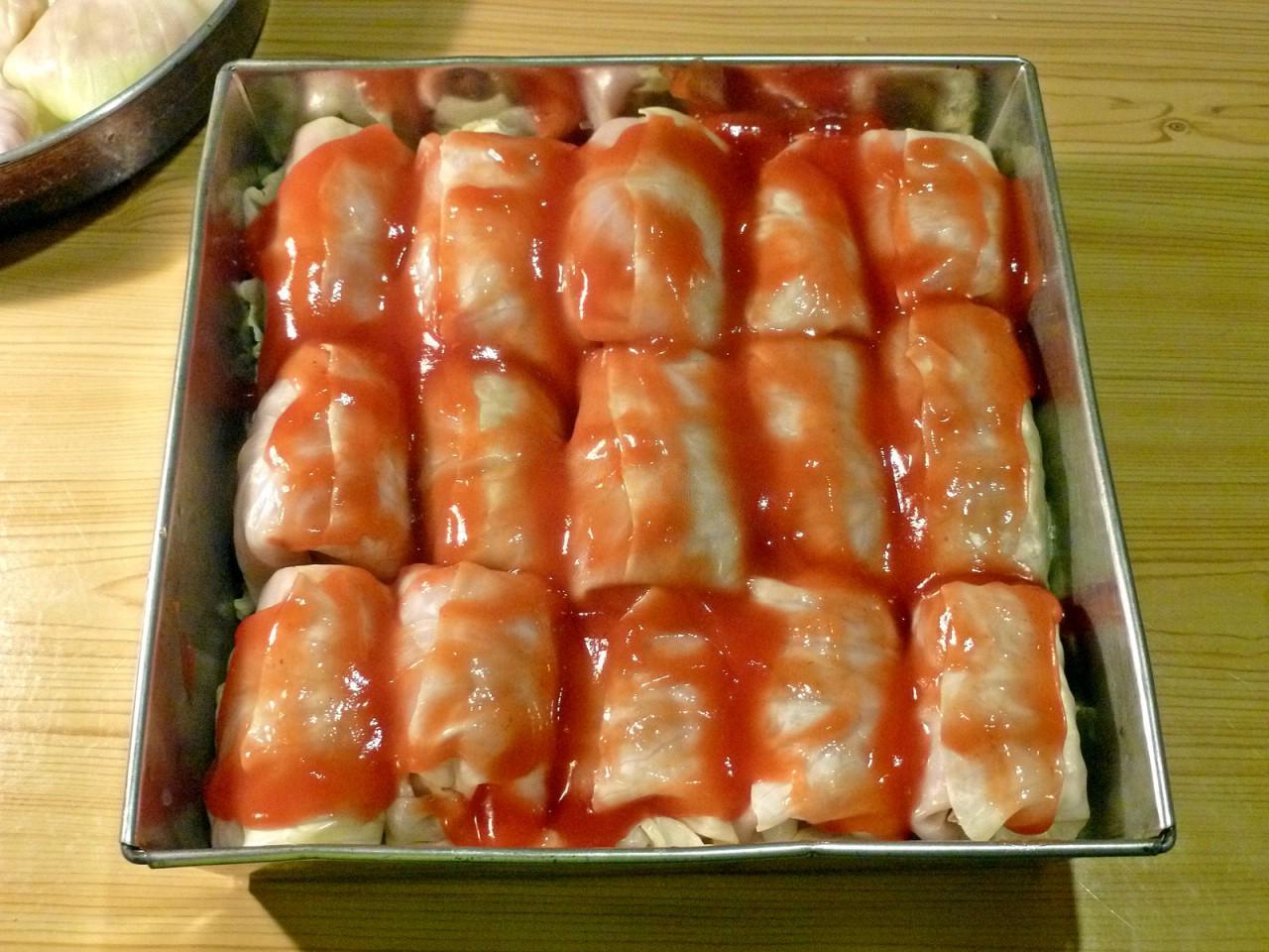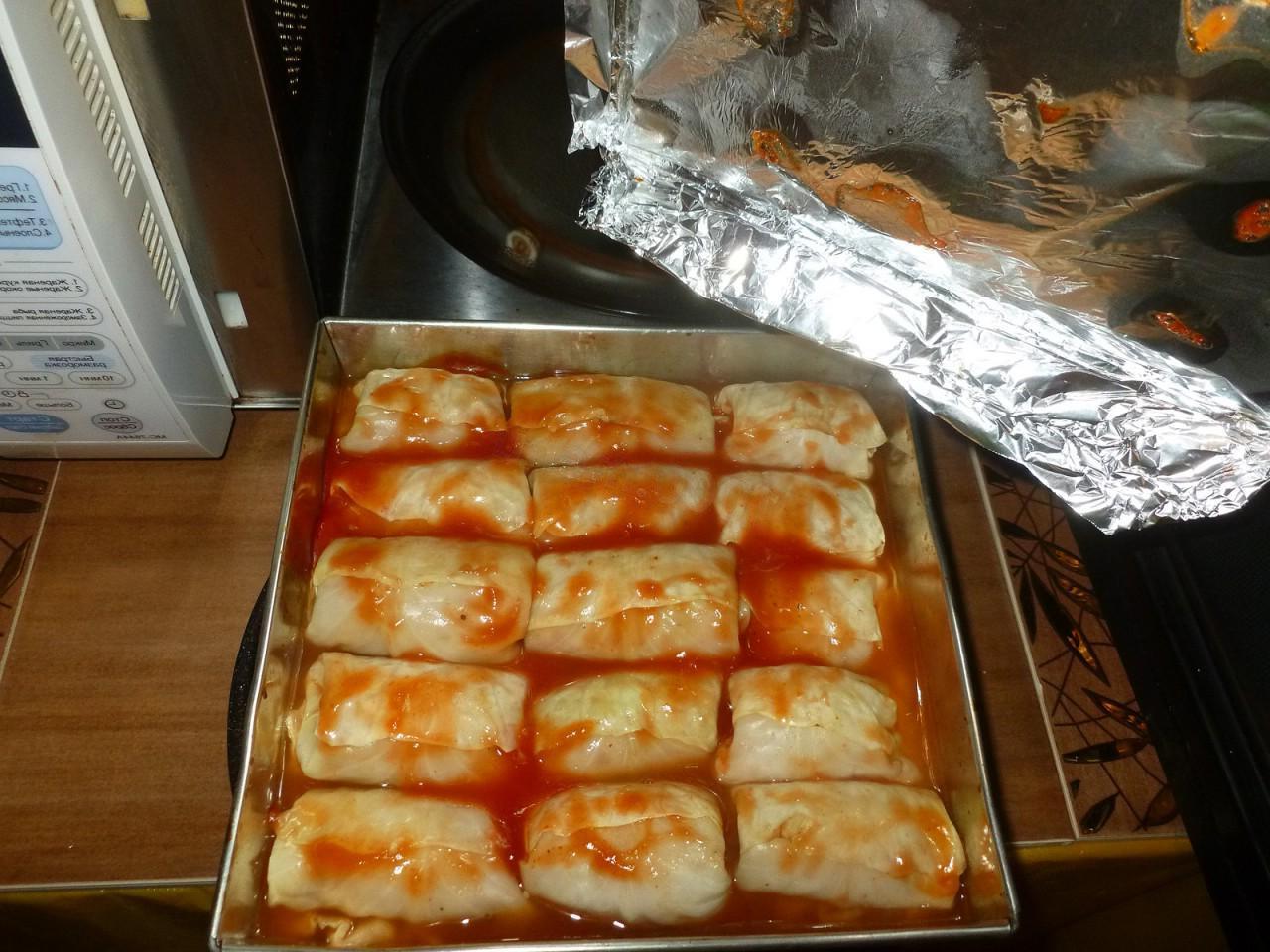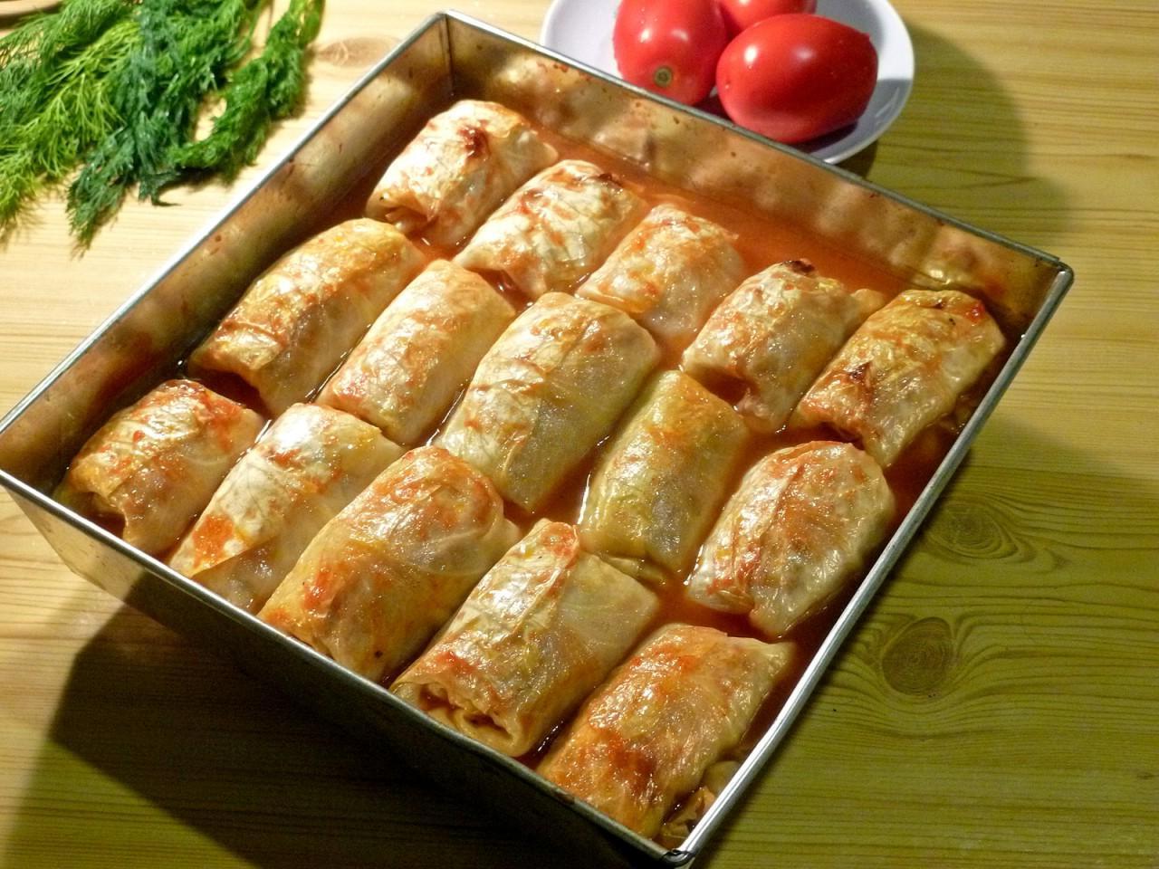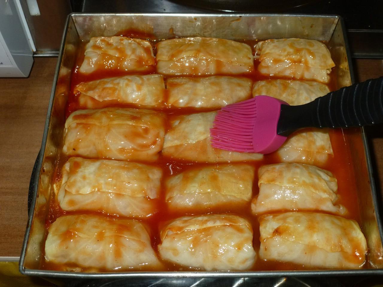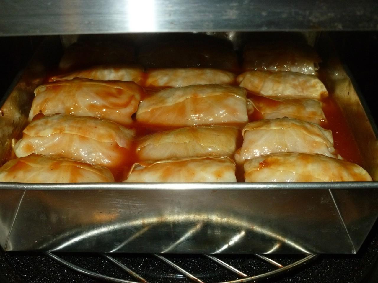 Baked Stuffed Cabbage Rolls in Tomato Sauce