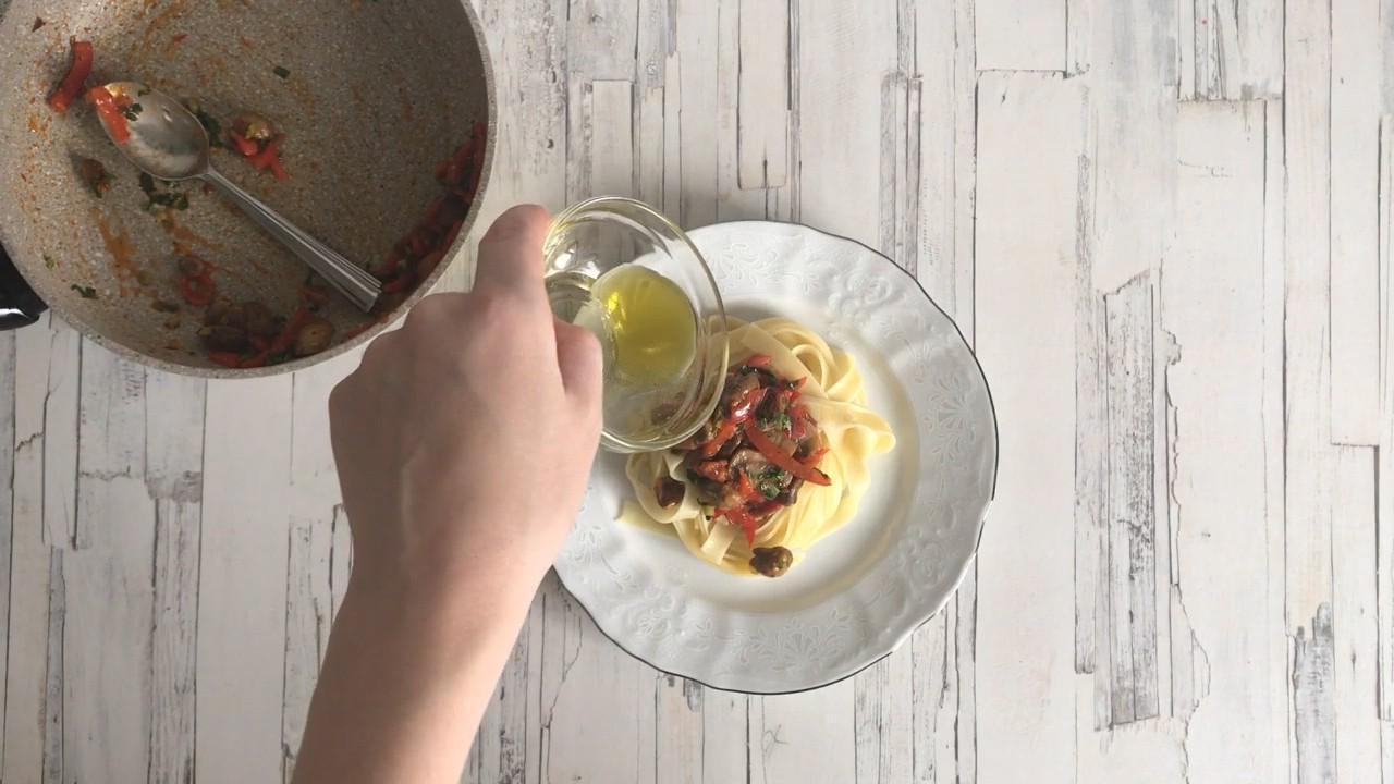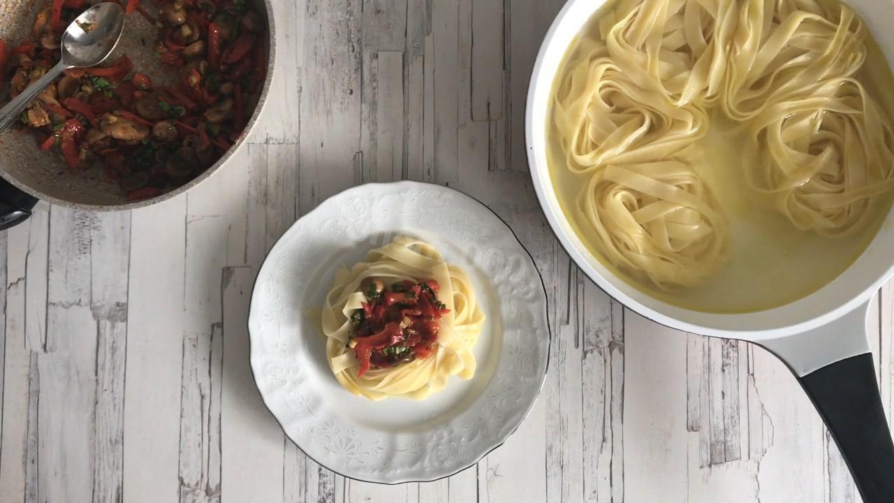 A delicious and beautiful pasta dinner in a short time! These mushroom nests are quick and easy to prepare. The good thing about the recipe is that you can change it to your taste: in addition to mushrooms, add other vegetables, cheese, and herbs. It turns out to be a simple but satisfying dish for a family lunch or dinner.