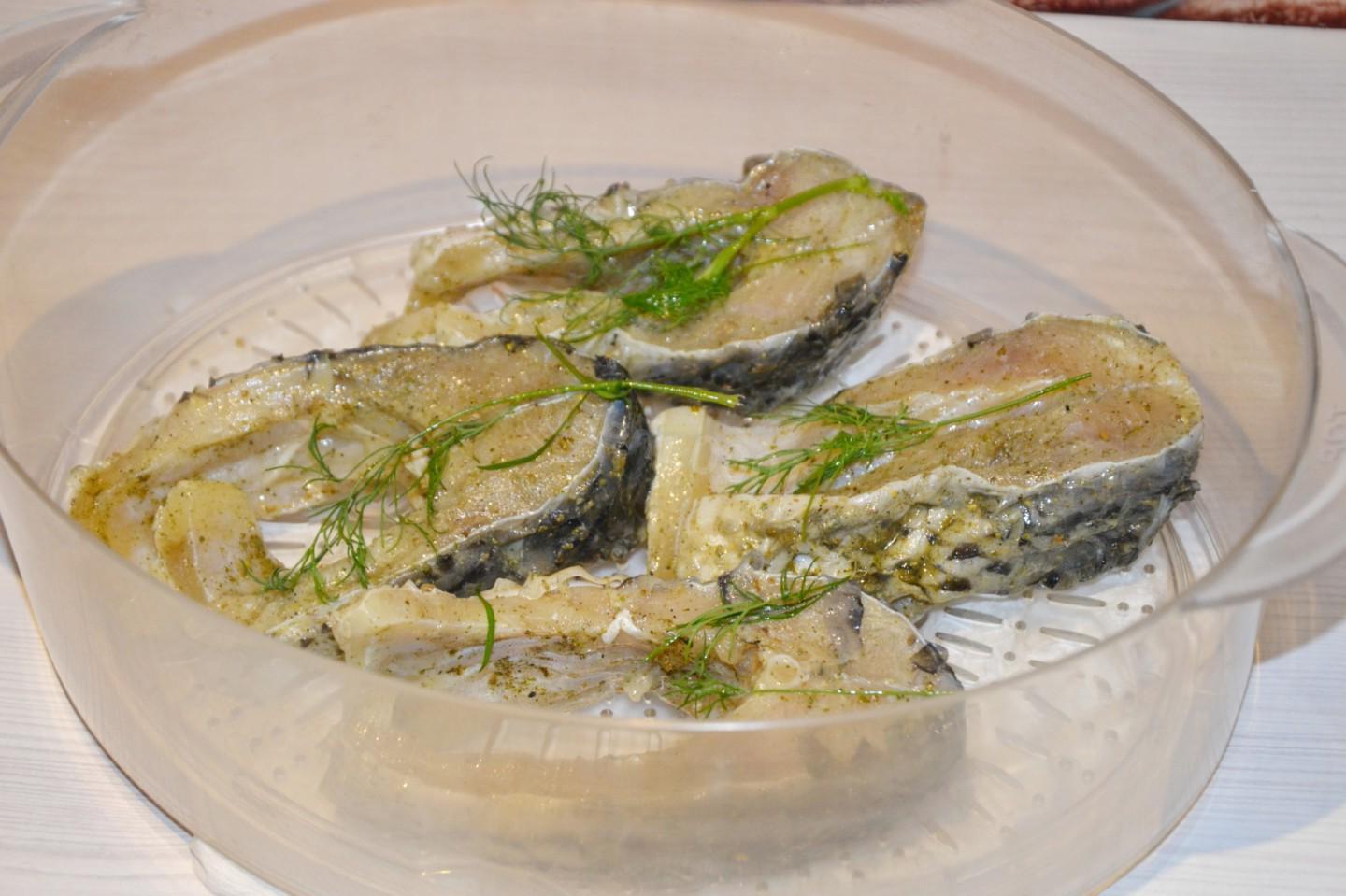 Fragrant, tender and healthy steamed fish. Steamed carp is a very healthy and dietary dish. The carp turns out tender, juicy and nutritious. You can take any other types of fish, just so that the carcass is meatier. All you need to do is marinate the fish, and the steamer will do the rest) As a result, a wonderful dietary lunch on the table!