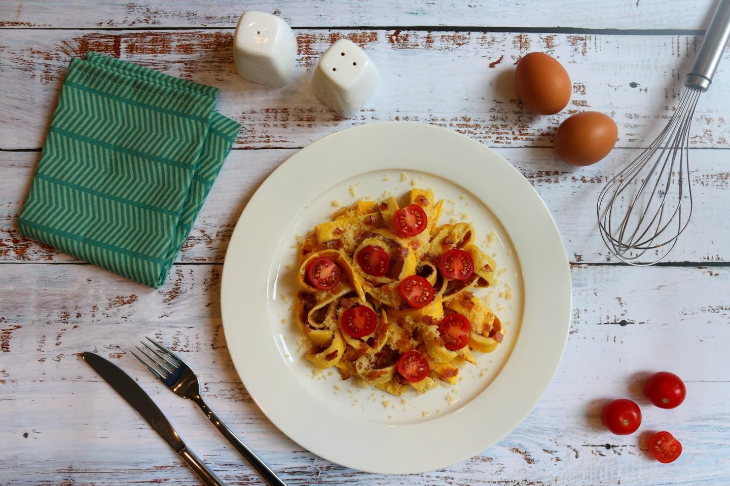 Cherry Tomato & Bacon Omelet Strips with Cheese