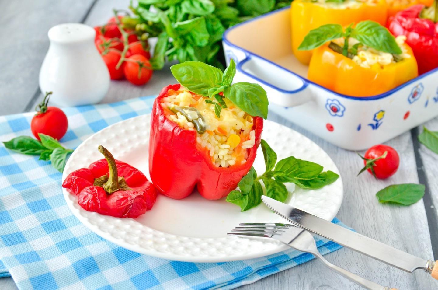 Light, dietary, beautiful, appetizing, for dinner! Peppers stuffed with vegetables and rice in the oven are an excellent alternative for those who do not eat meat or are on a diet. Adding vegetables makes the filling juicy and tasty, and baking without sauce reduces the calorie content of the dish.