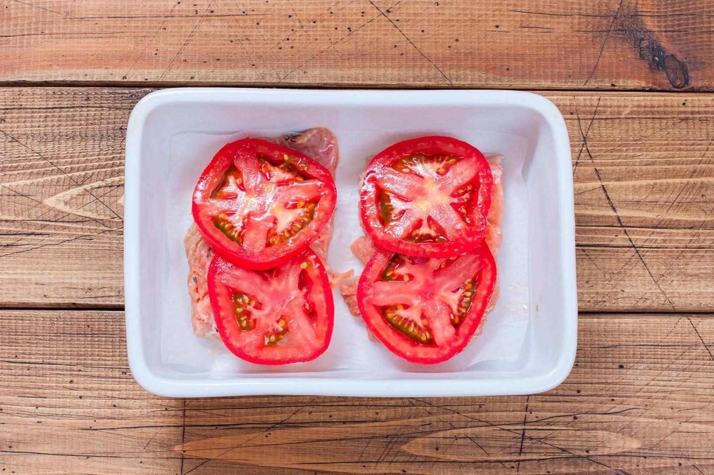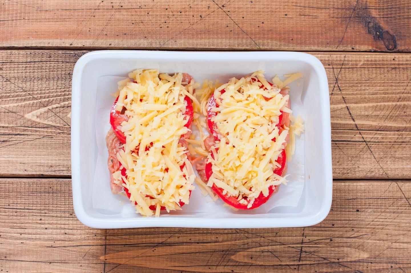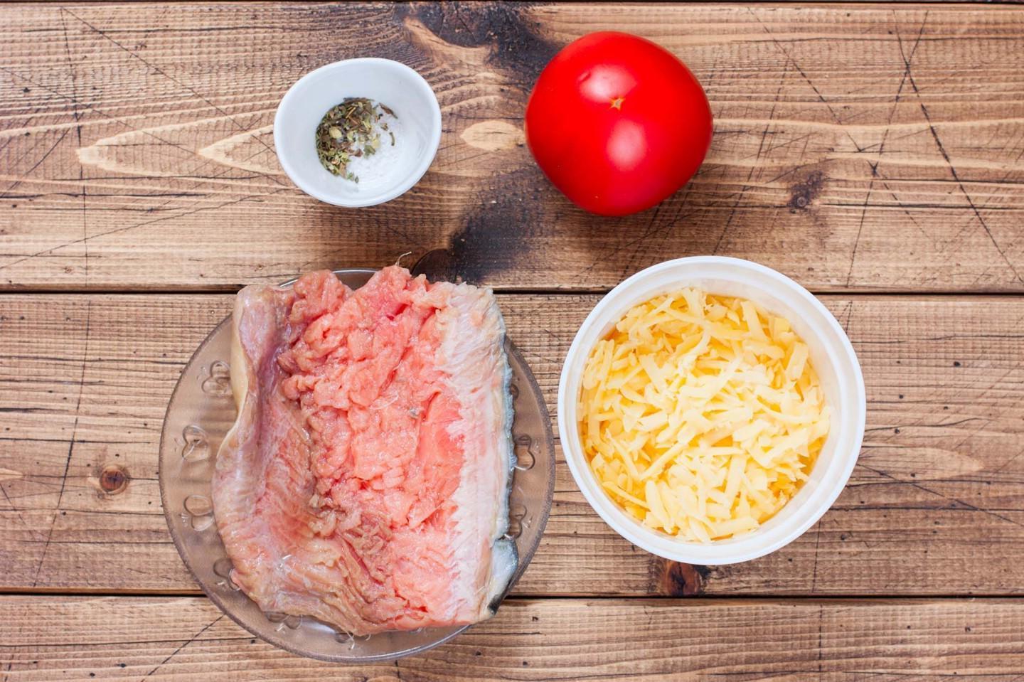 Oven-Baked Pink Salmon with Tomatoes and Cheese