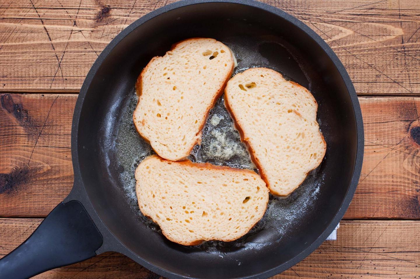 Favorite since childhood, very tasty and tender. For the whole family. Long loaf croutons with eggs are a light, delicious breakfast that even a child can handle. These croutons can be made sweet. You can serve them with anything: honey, caramel, fruits or berries, cheese, red fish, sausage. Experiment!