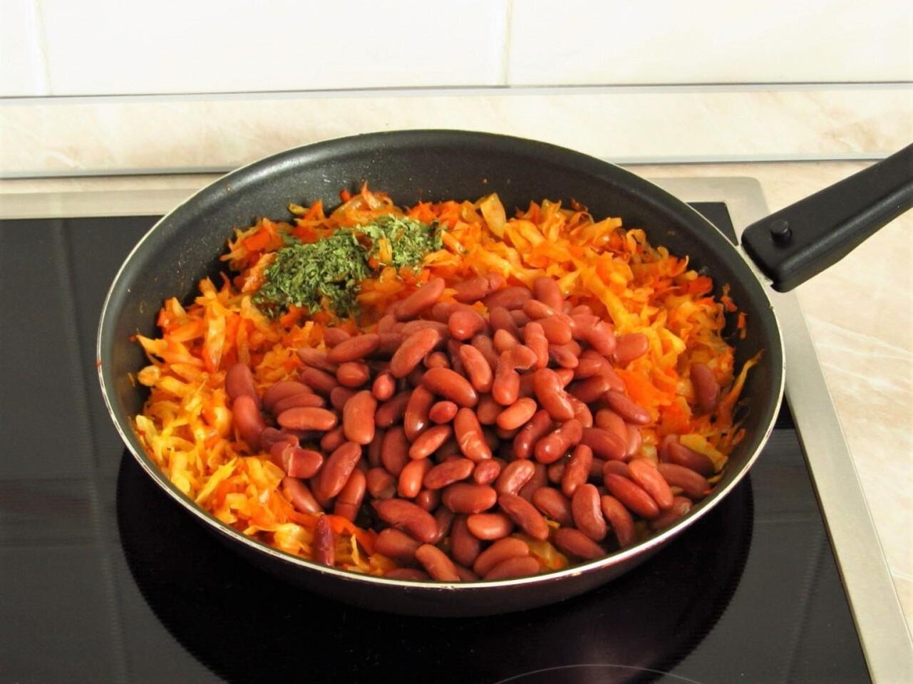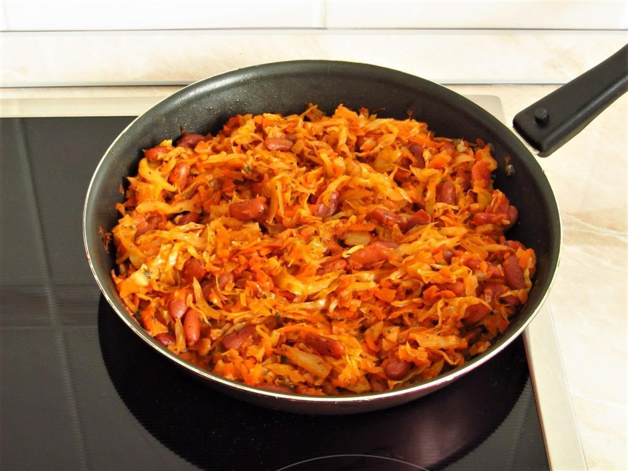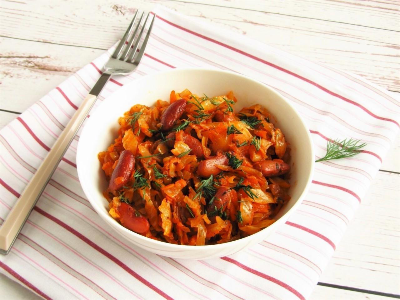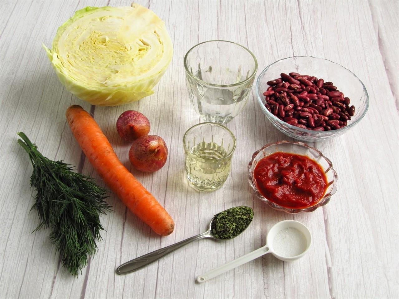 A simple, but very tasty and satisfying dish. Anyone can make stewed cabbage and beans, even a less experienced cook. As a rule, everyone has the necessary simple vegetable set in their kitchen. This cabbage is suitable for lean and vegetarian menus.