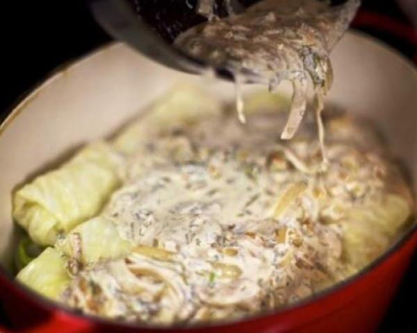 Words cannot describe how delicious it is! Cook and enjoy! Tender minced beef wrapped in a soft cabbage leaf and baked in a delicate sour cream and onion sauce. What could be tastier?