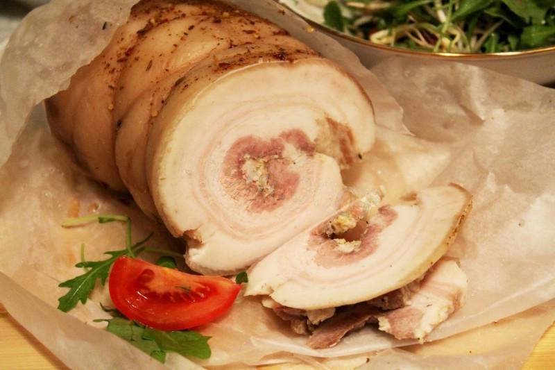 Belly roll is a real food for men: hearty, with garlic! Belly roll (podcherevka) is a very tasty and very filling product. Its main advantage and difference from industrial sausages and meat products is the absence of preservatives and other additives (salt for taste).