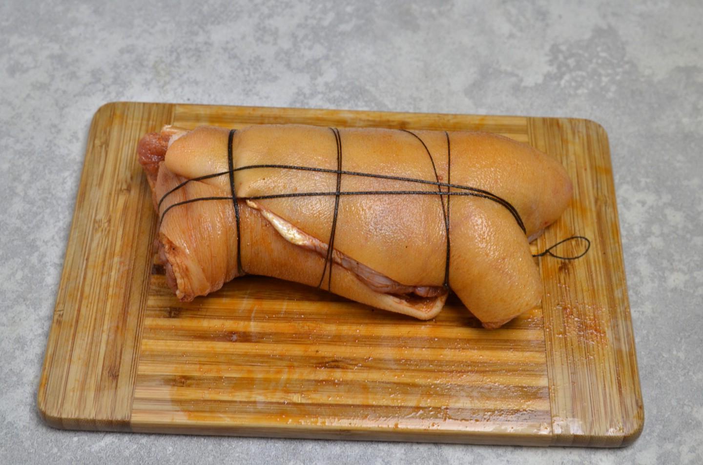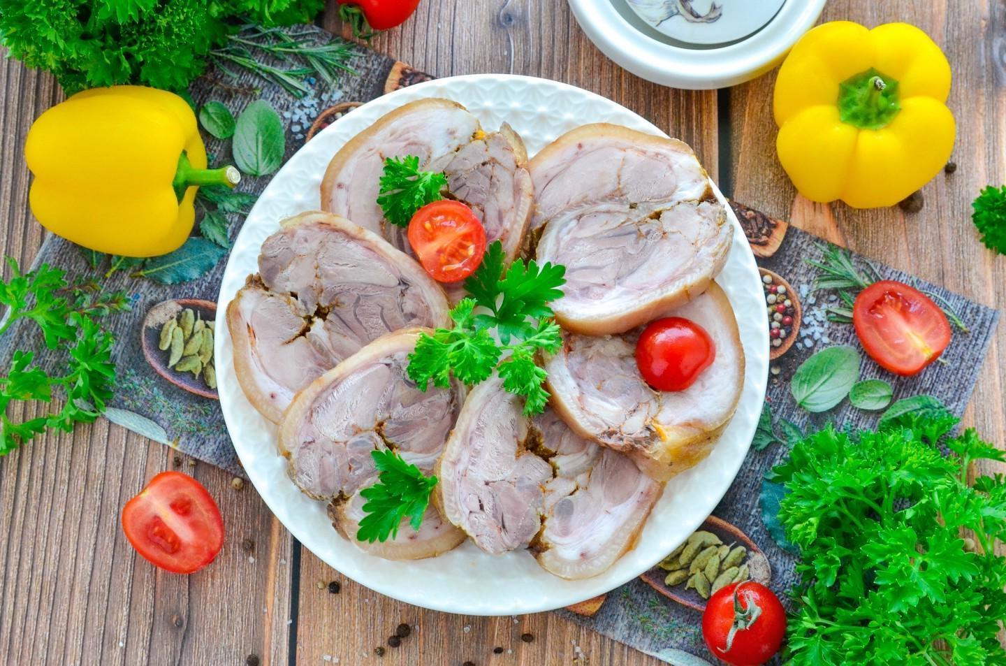 Spicy and so aromatic that all the neighbors will come running! The pork knuckle roll is baked in the oven in foil; it does not need to be boiled first, just marinated. After cooling, the roll is stable and can be carefully cut into thin slices. This appetizer will decorate any table.