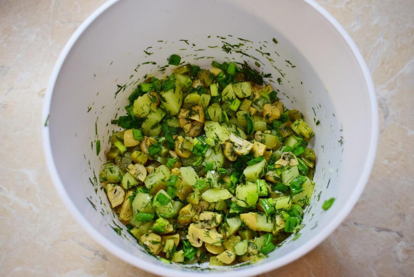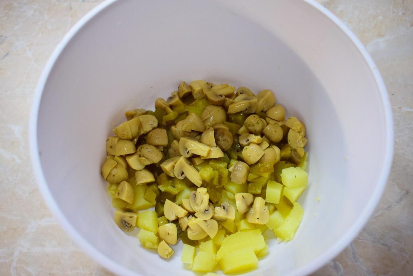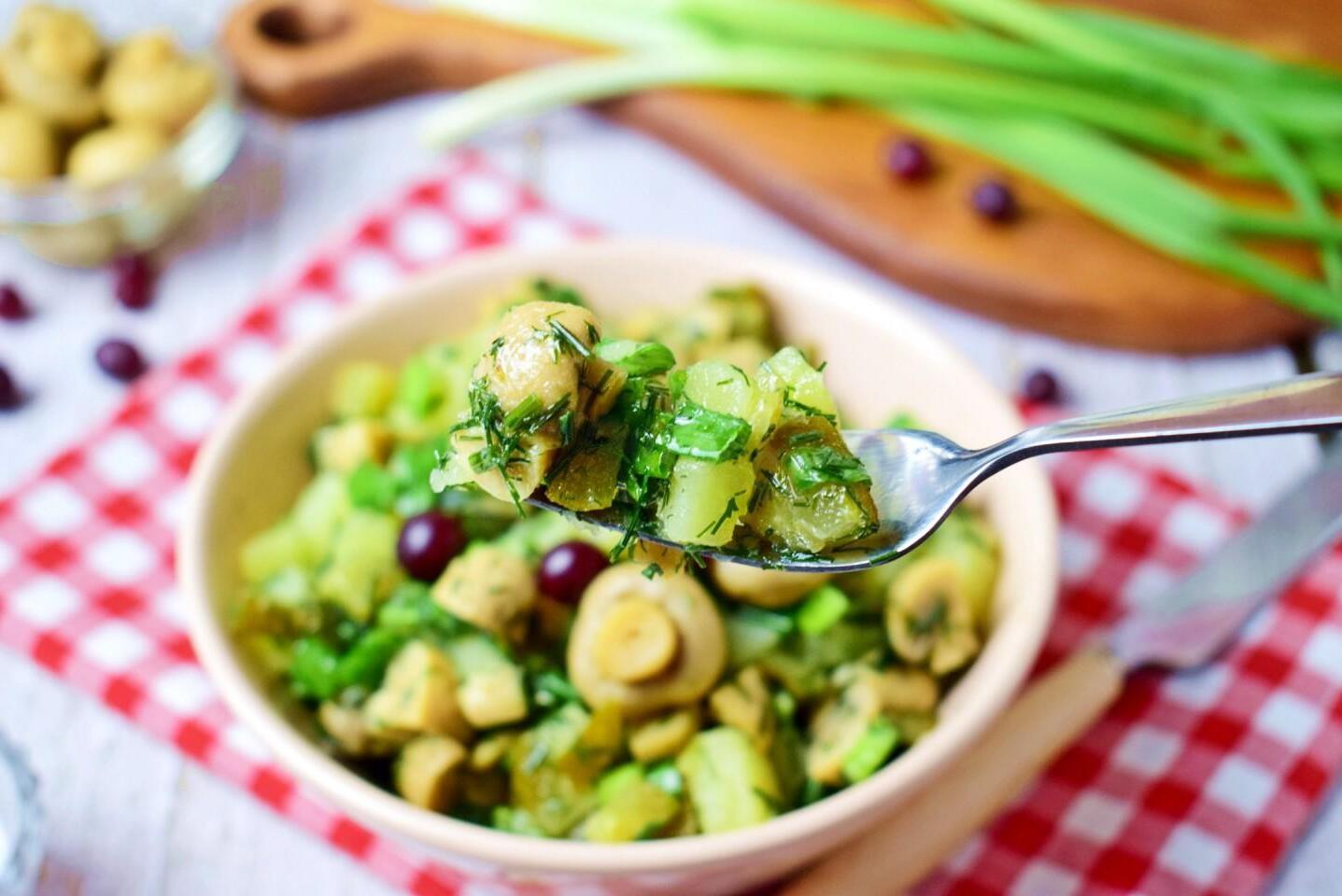 Lean, simple and delicious, in a hurry! Classic rustic salad has several cooking options. But I prefer the option with mushrooms and pickles. It is available in composition and quite easy to prepare. In winter, I prepare this salad quite often!