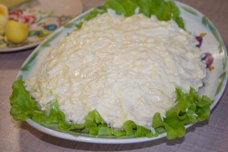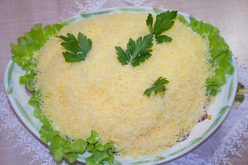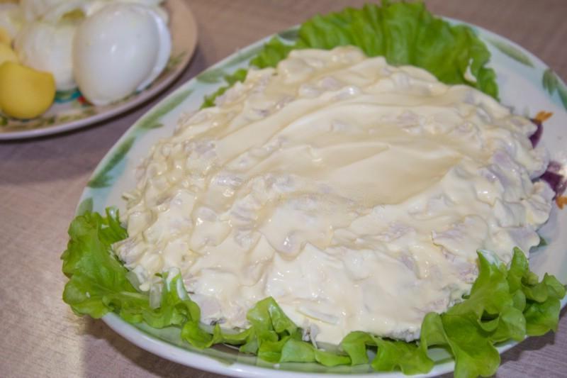 A very tasty simple and delicate salad for real men and not only! This salad is truly universal — it will look perfect on the New Yearʼs table, suitable for menʼs holidays and birthdays, but it is not at all difficult to prepare it for the everyday table! According to the classics, this salad is prepared with beef, but I suggest preparing it with smoked chicken. I hope your men will appreciate this salad! My husband appreciated it, and I really liked it too!