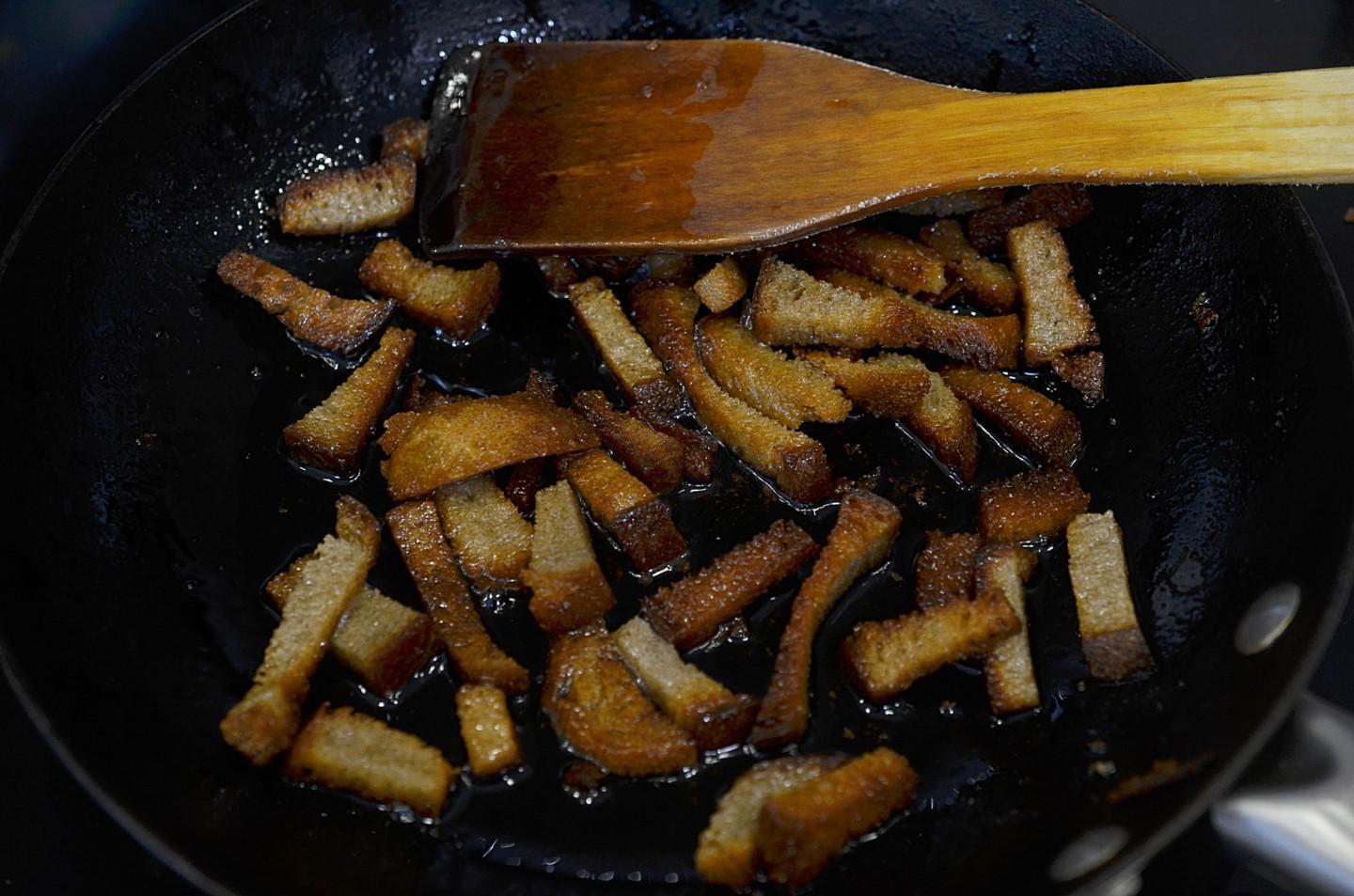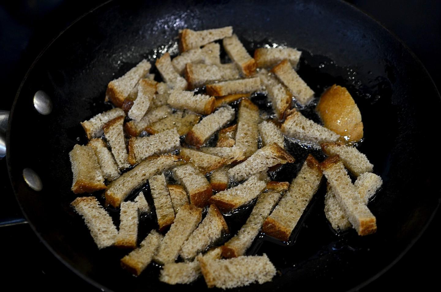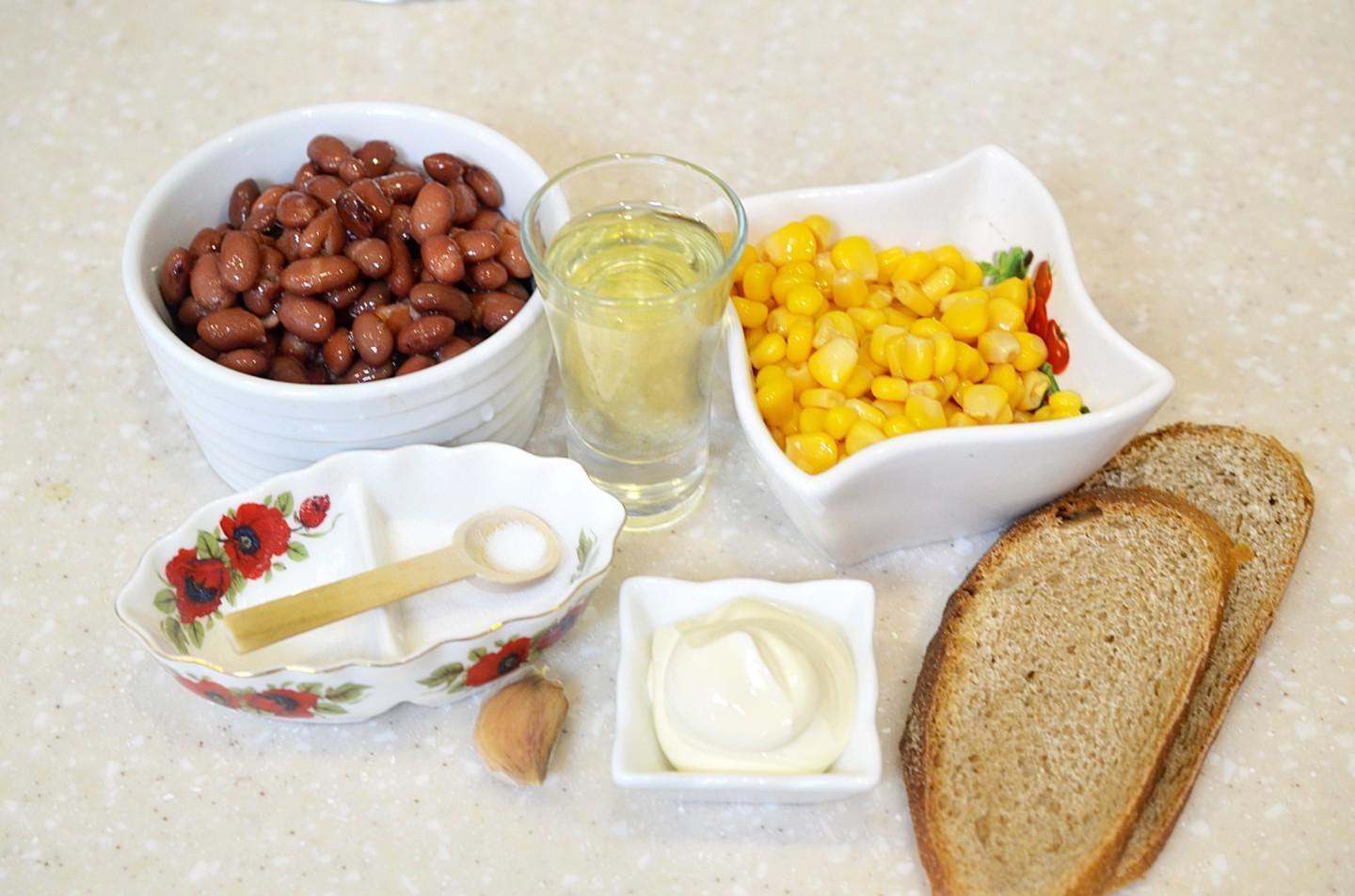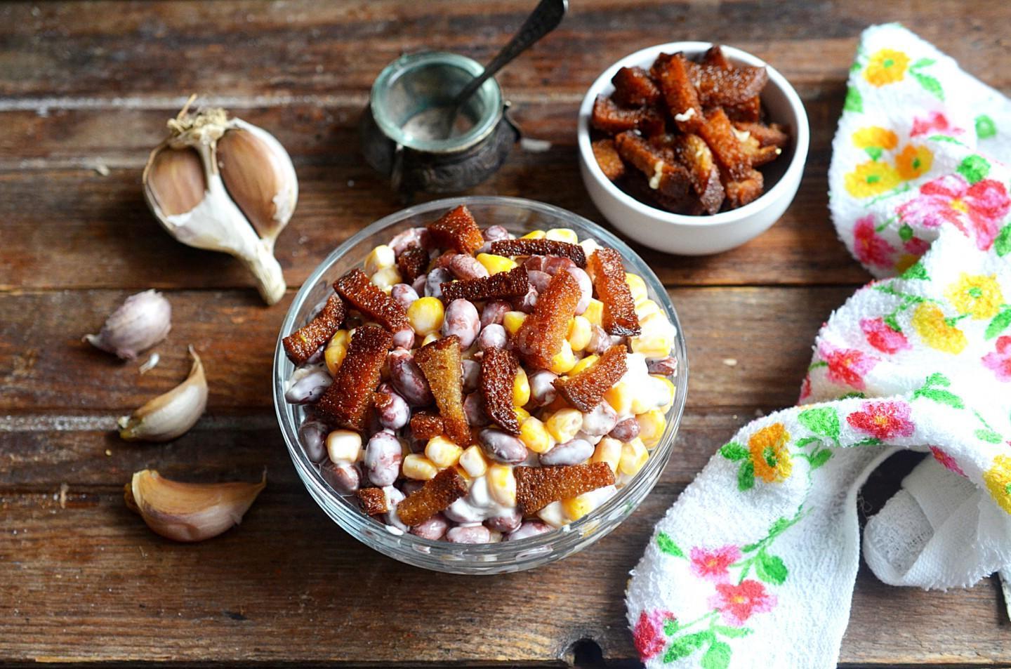 Hearty, flavorful lean corn and bean salad! Bean salad with spicy homemade croutons is very filling and aromatic. Can be served as a separate dish or as a side dish. Moreover, the dish is also lean!