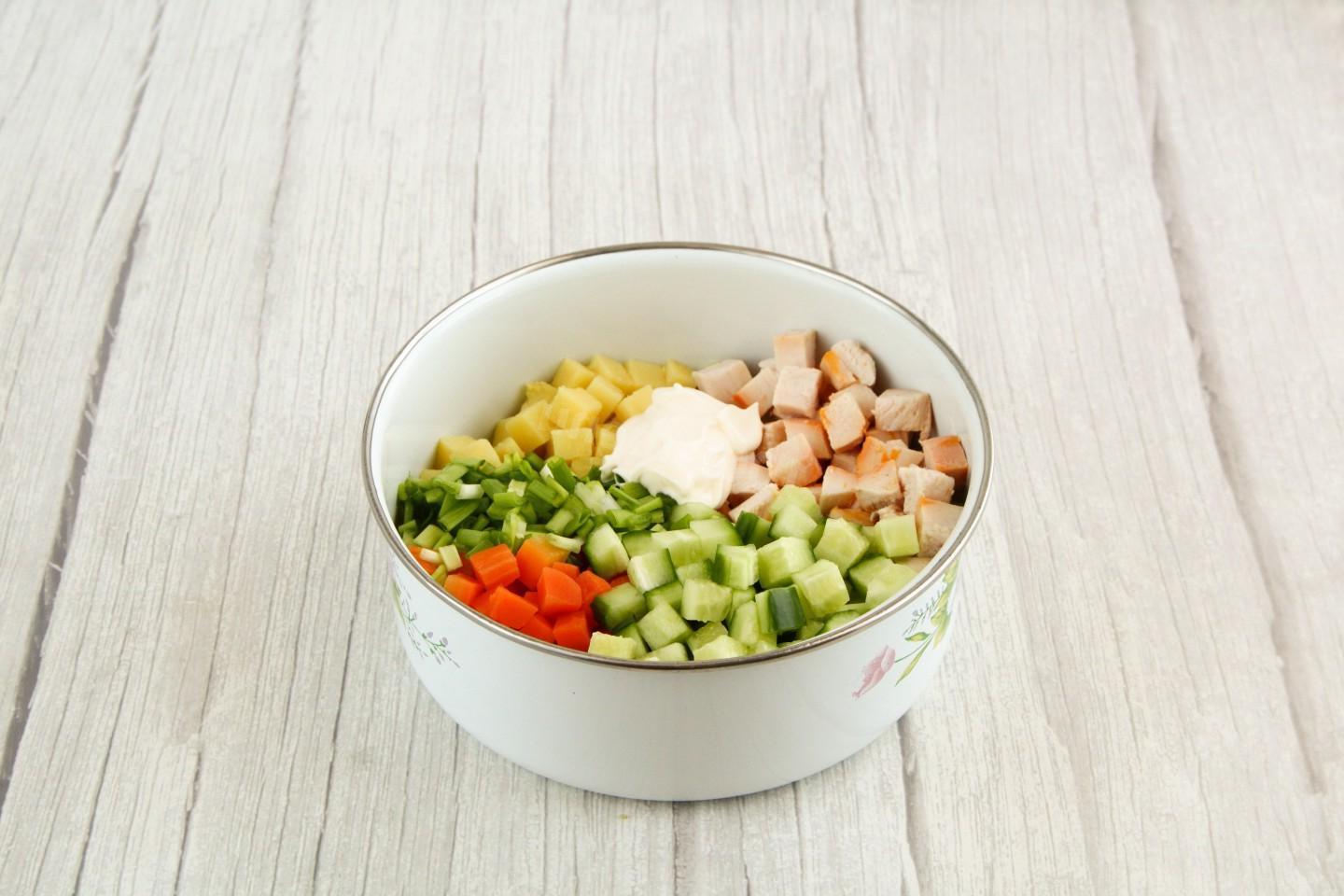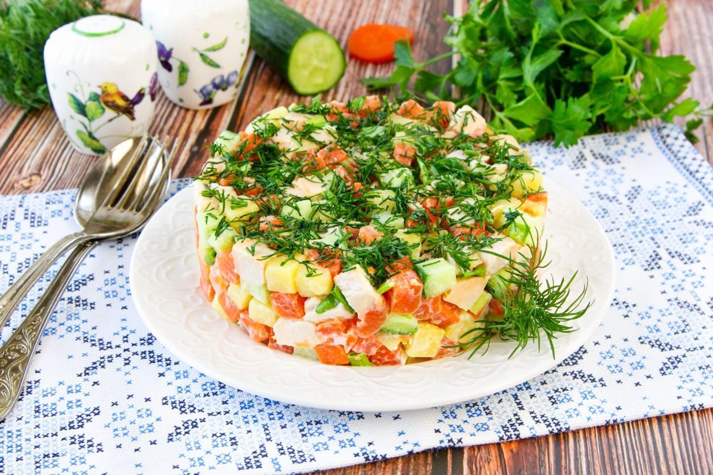Bright, beautiful, incredibly tasty! For any occasion. Smoked chicken, carrot, cucumber salad is not only simple, but also quick. Therefore, it is convenient to do it on a weekday. The taste of smoked meat goes very well with the other ingredients. Mayonnaise or sour cream is suitable for dressing.