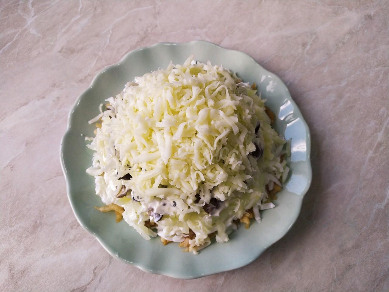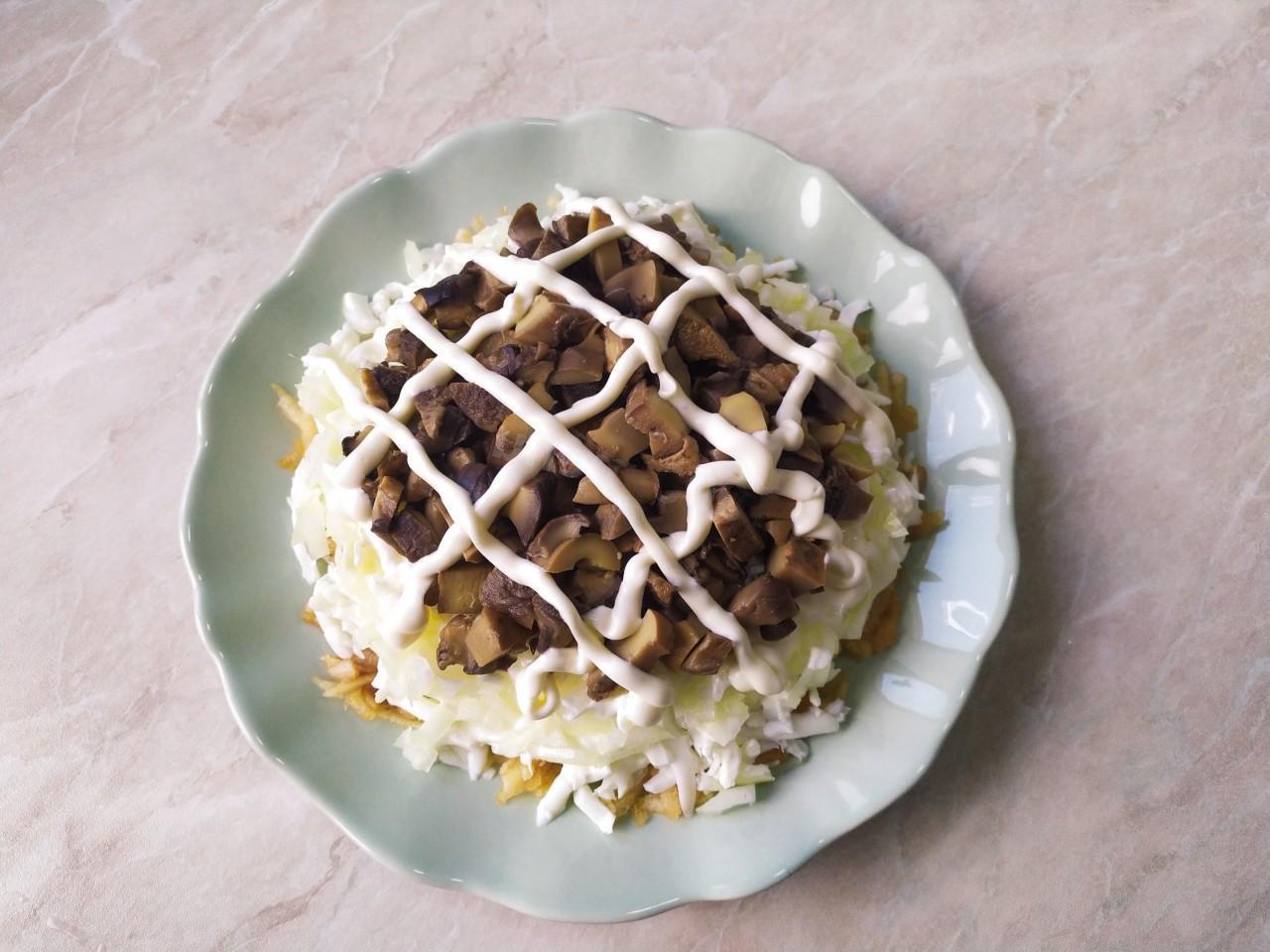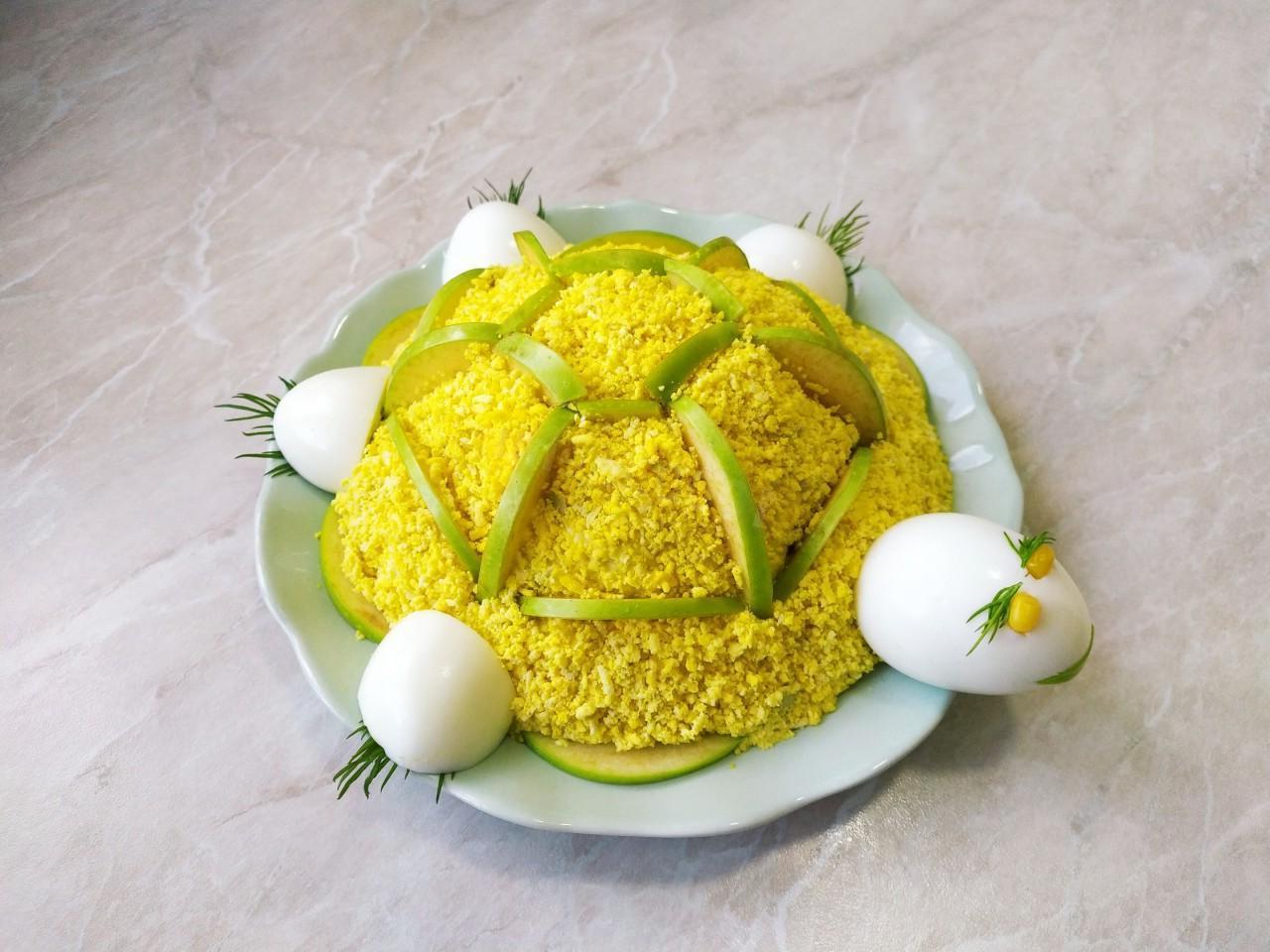 Beautiful and amazingly delicious! Best table decoration! Turtle salad with mushrooms turns out very juicy, tender and satisfying with a pleasant apple aroma. All ingredients are stacked in layers and decorated in a very unusual way. Itʼs perfect for the holidays. Children will especially appreciate it.