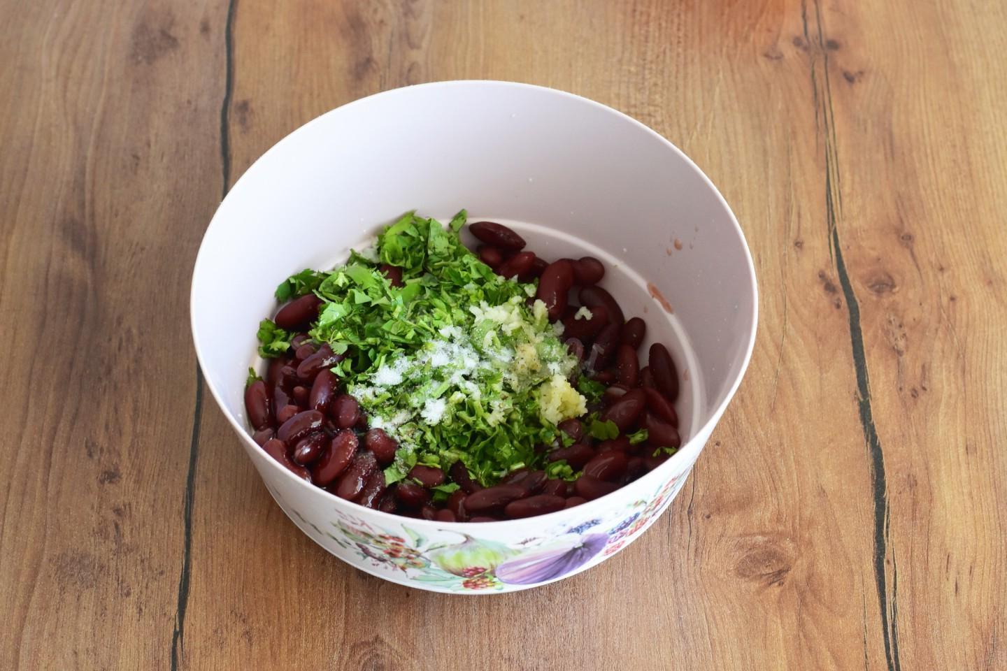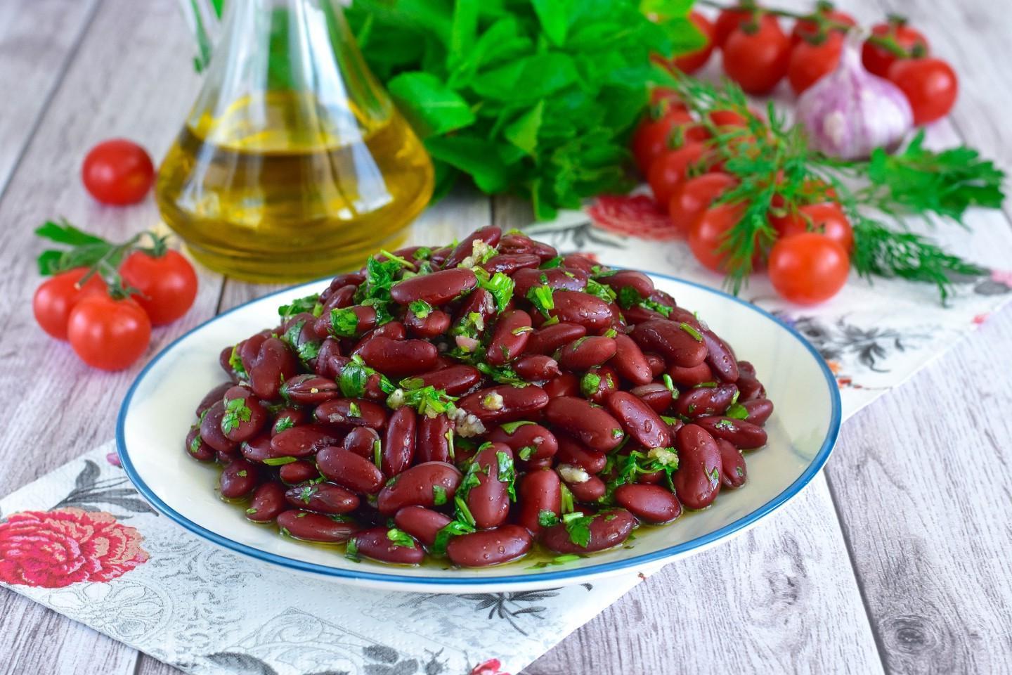 Mega simple, mega tasty and satisfying! A real find! You can serve beans with garlic to the table as an independent dish or as a side dish for meat or poultry. The salad is rich in protein, which is especially attractive for those who are on a diet or have dietary restrictions.