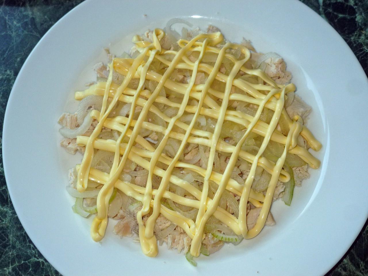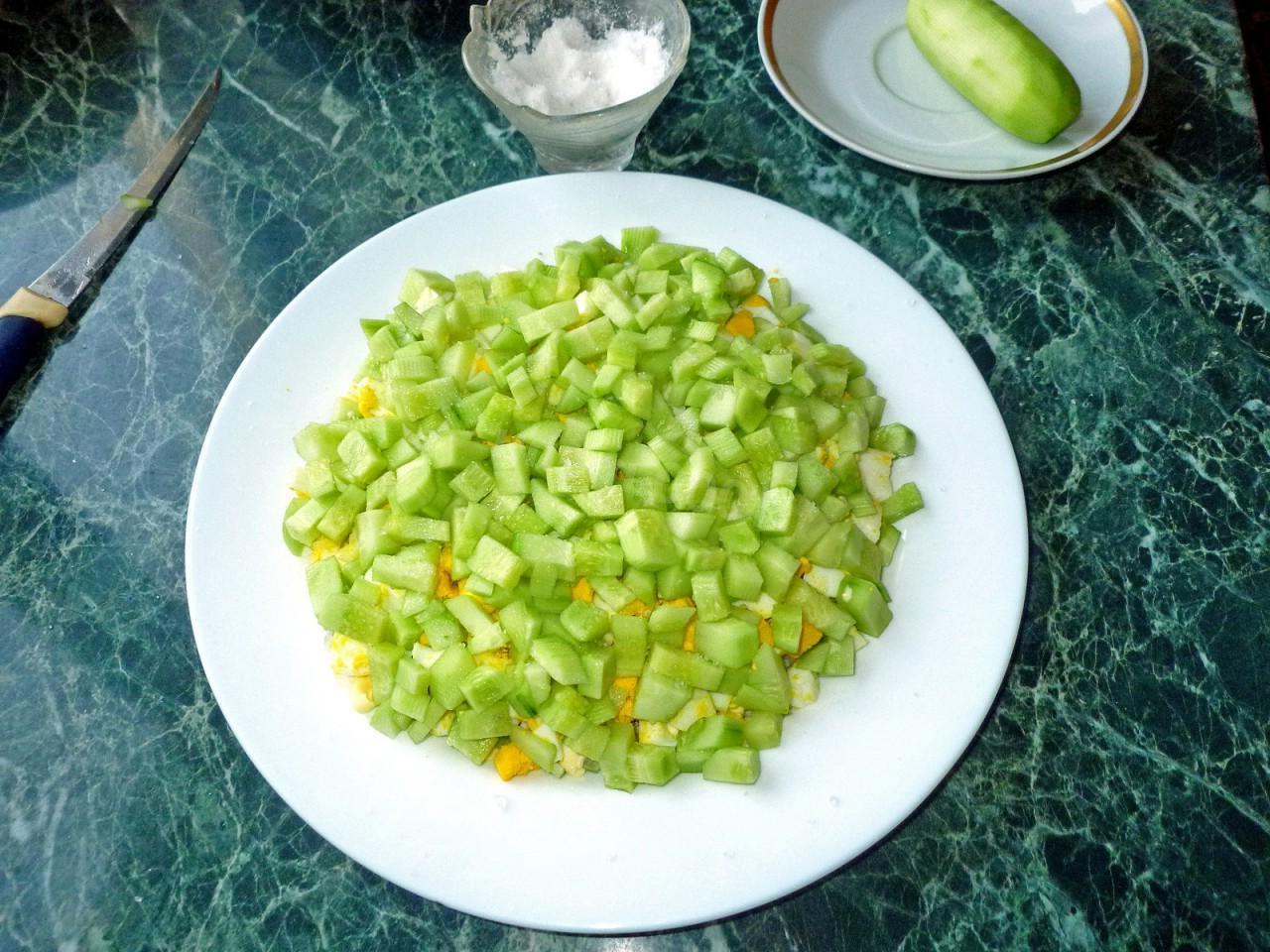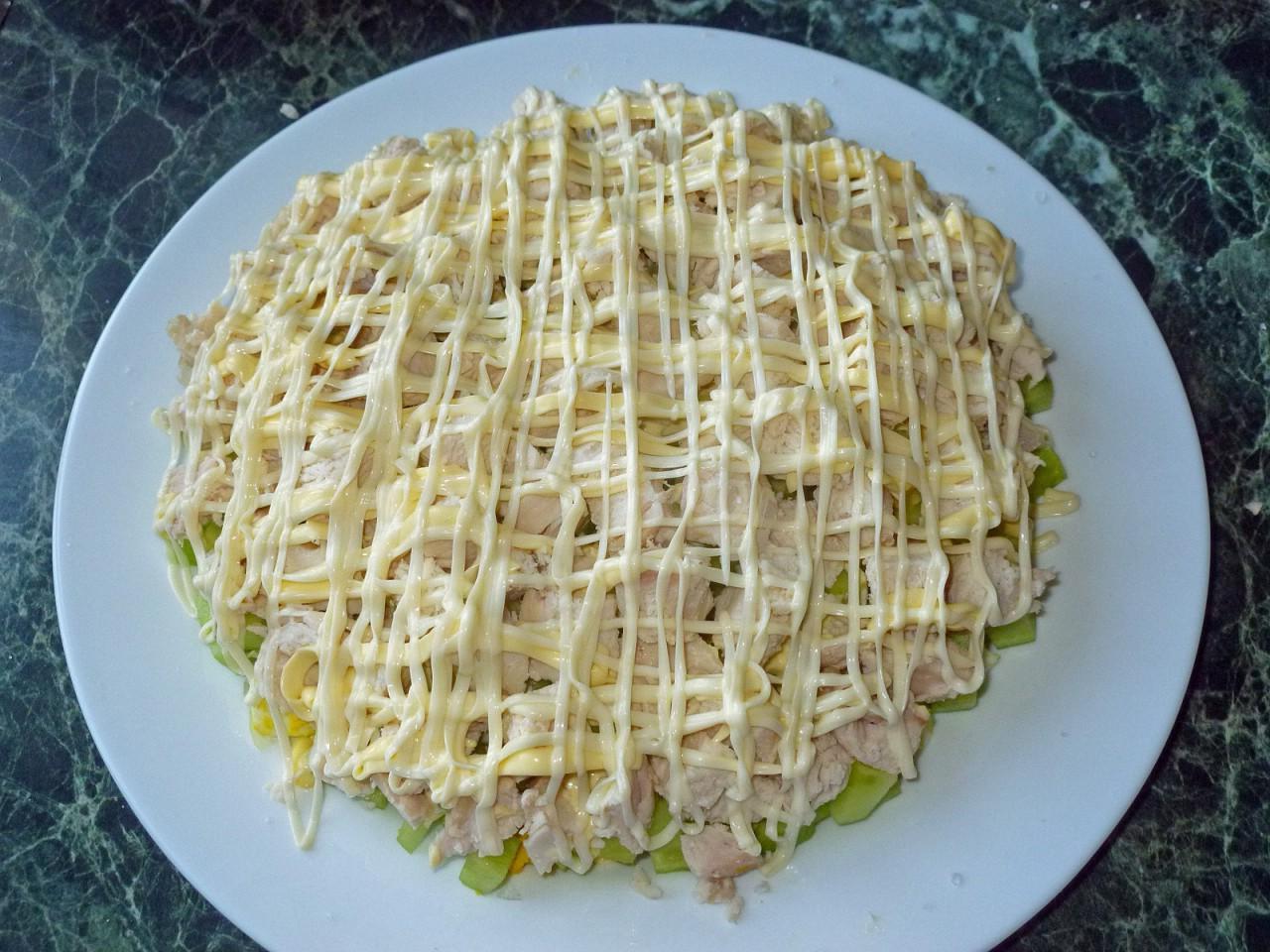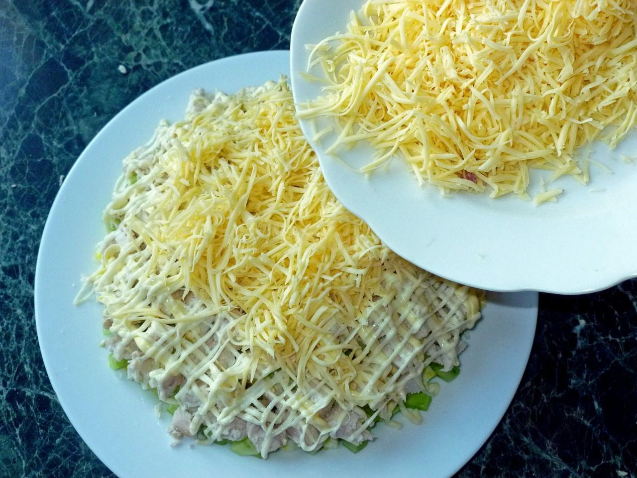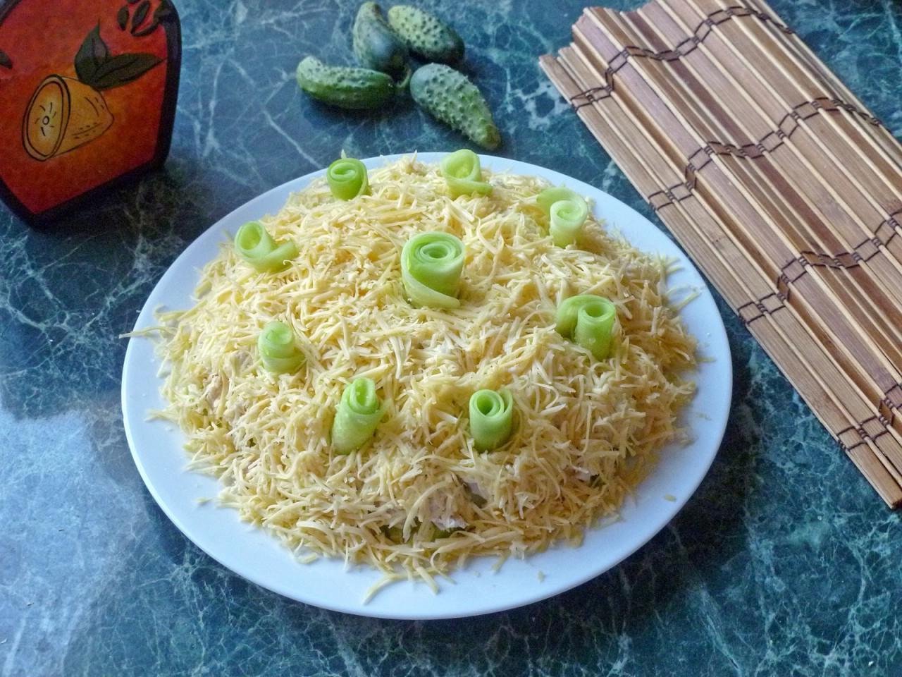 Ideal for any feast — bliss! It’s not called Tenderness salad with cucumbers and chicken and cheese for nothing, because it really turns out incredibly tender. Its rich and bright taste brings real gastronomic pleasure. Hurry up and cook!
