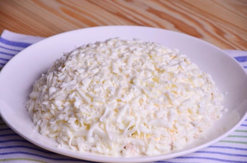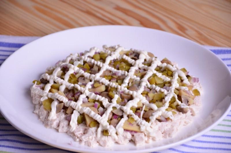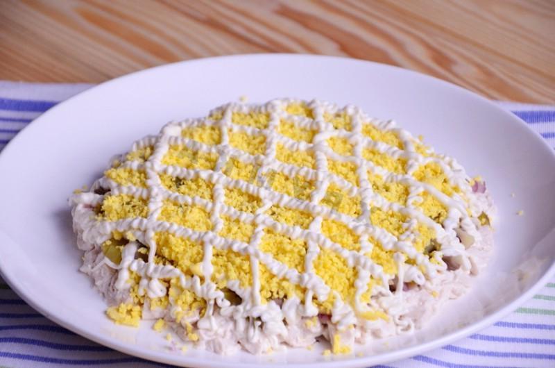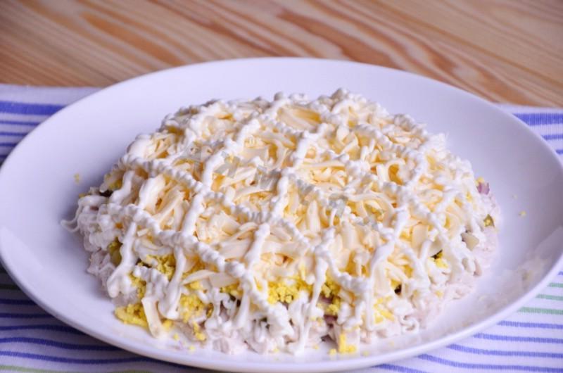 Festive "Candle" Salad with Crab Sticks, Mushrooms, and Chicken