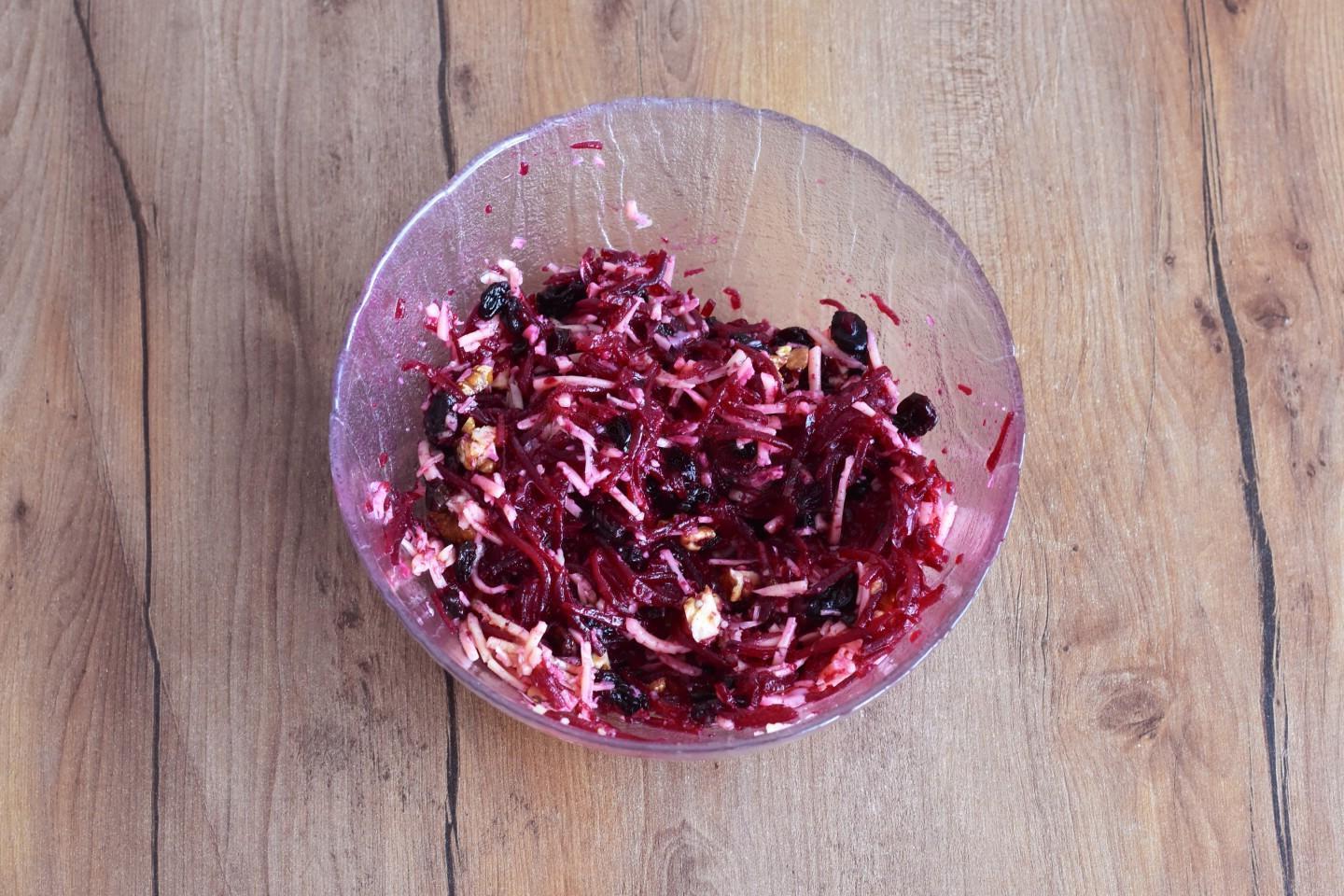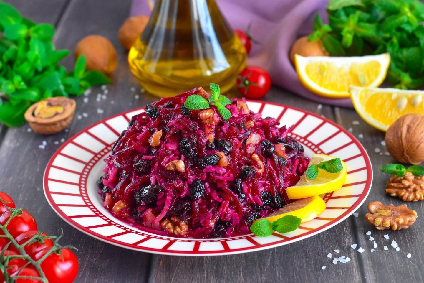 Refreshing, budget-friendly, vitamin-packed, for every day. Salad with raisins, walnuts and beets is prepared quickly and easily, even a beginner in cooking can handle it. For people who love beets, this salad will be an interesting variety on the menu.
