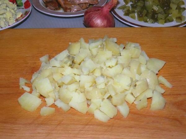 Great holiday salad. A worthy replacement for Olivier and mimosa!. In addition to its original taste and appearance, this salad is also very healthy. Cod liver contains 60% fish oil, which makes this product very valuable for our health. The salad is hearty, has a rich taste, and is a little spicy. Donʼt forget that cooking is an art! This means you can safely experiment with both the composition and quantity of ingredients, as well as the method of serving. This recipe is basic, but donʼt limit yourself. If you like it more piquant, feel free to add spicy pickled onions and pickled cucumbers. If you want it more tender, add canned green peas, reduce the amount of pickled cucumber, and increase the amount of eggs. The salad can be served on a platter or served in portions. You can mix all the ingredients and decorate the salad using a serving ring. Create and enjoy the result!