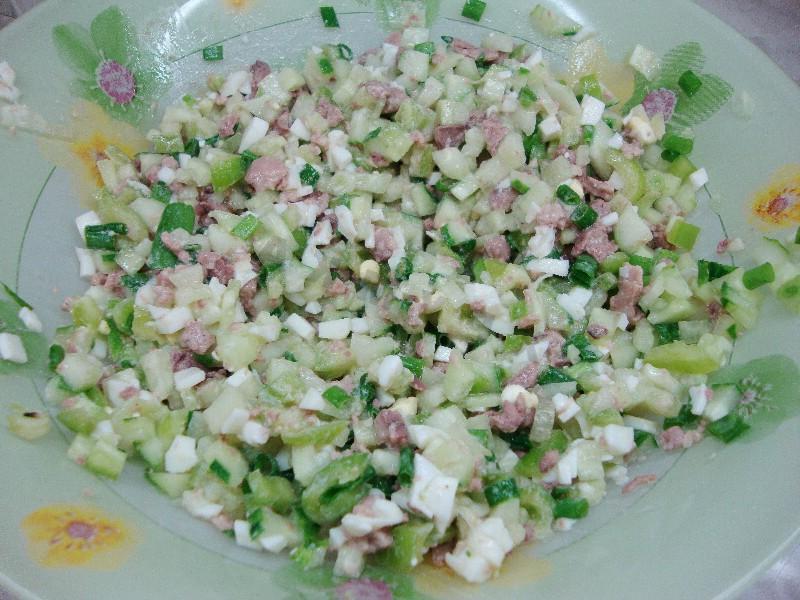 Delicious salad with healthy ingredients! Cod liver is a very healthy product, so you need to have more different recipes with this ingredient. Therefore, I offer a quick salad from products that can always be found in the refrigerator, and cod liver will give this dish a new, interesting taste.