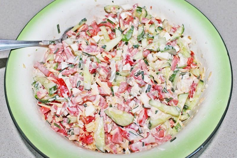 Uzbek-Style Bakhor Salad with Sausage