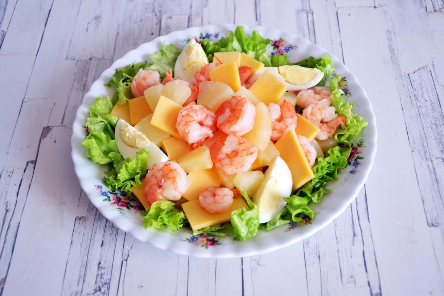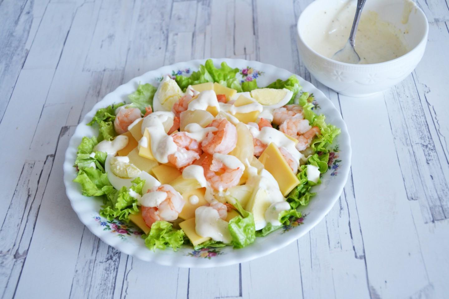 A tasty and healthy shrimp salad with an interesting dressing. The combination of ingredients for the salad itself, without taking into account the dressing, is very successful. But with dressing, the salad becomes not just tasty, it acquires some kind of sophisticated sophistication in the best traditions of French cuisine. Regular hard cheese can be replaced with some blue cheese — and the restaurant dish is ready.