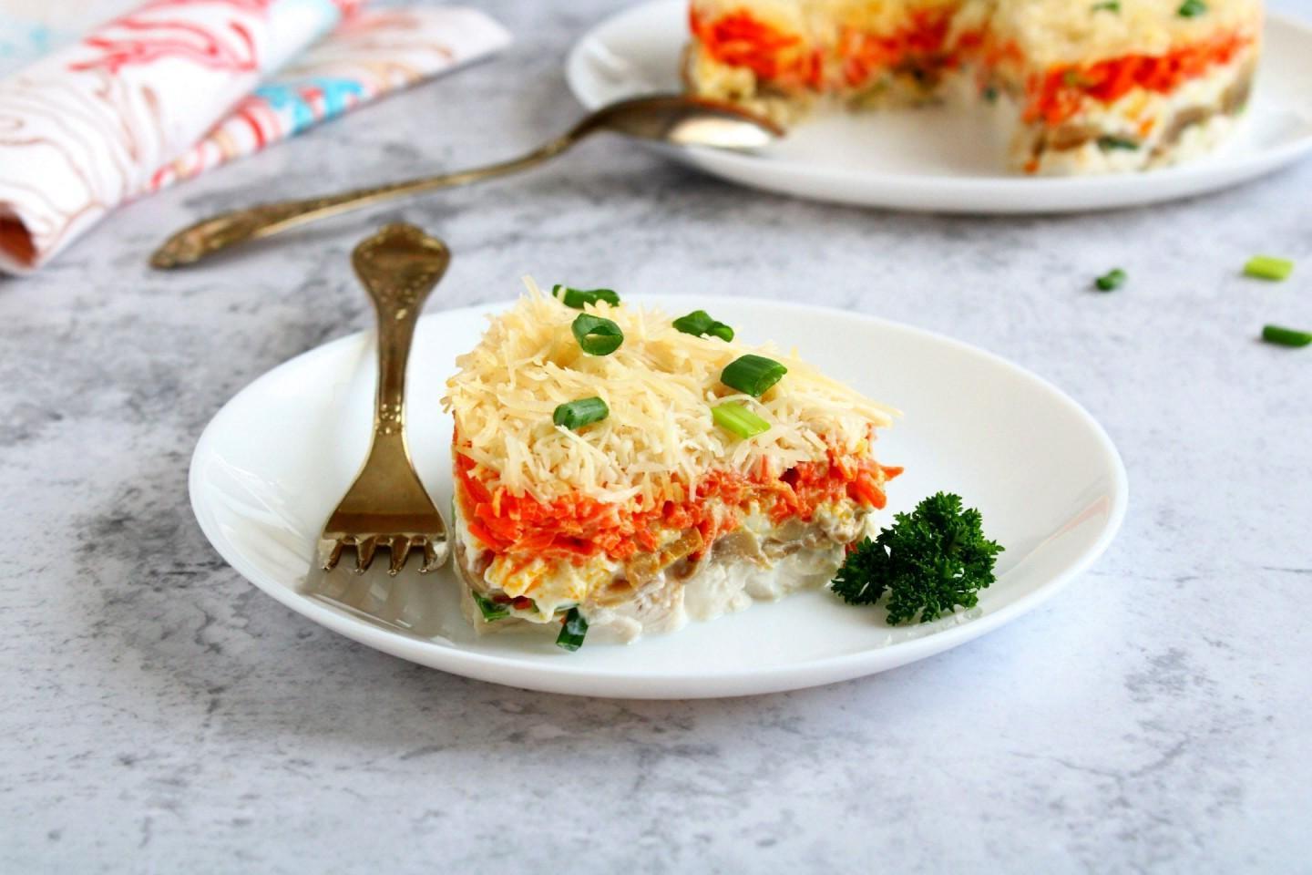 Delicious, with spicy notes and an unusual name! Layered salad Menʼs Tears with chicken, mushrooms and Korean carrots will conquer any gourmet with its taste. How can such a dish make anyone cry, especially a man? Maybe if the Korean carrots are too spicy?).