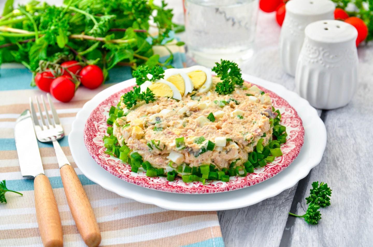 The fastest, simplest and most affordable of conventional products! Canned pink salmon salad is prepared in a matter of minutes, and it contains only three ingredients. It will help you out as a hearty snack or a light dinner dish. By adding other ingredients, you get a new taste every time.