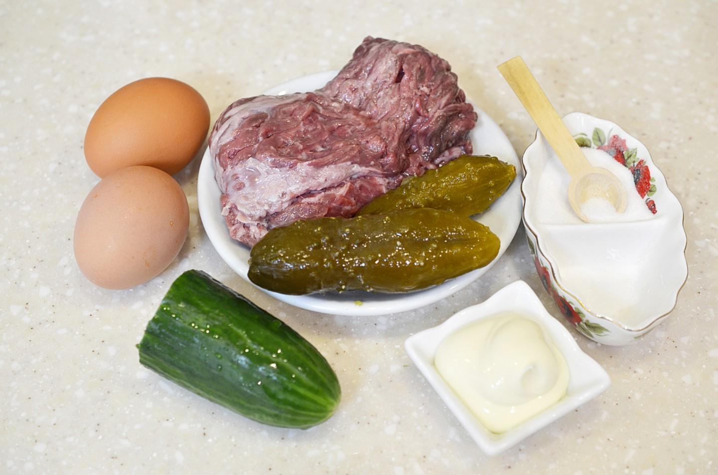 Simple, but very tasty. A real treat! A salad with beef and pickled cucumbers, reminiscent of Olivier salad in taste, is suitable for both a festive table and a daily meal. In composition it is much simpler than the famous salad, and in taste it is not inferior to it.