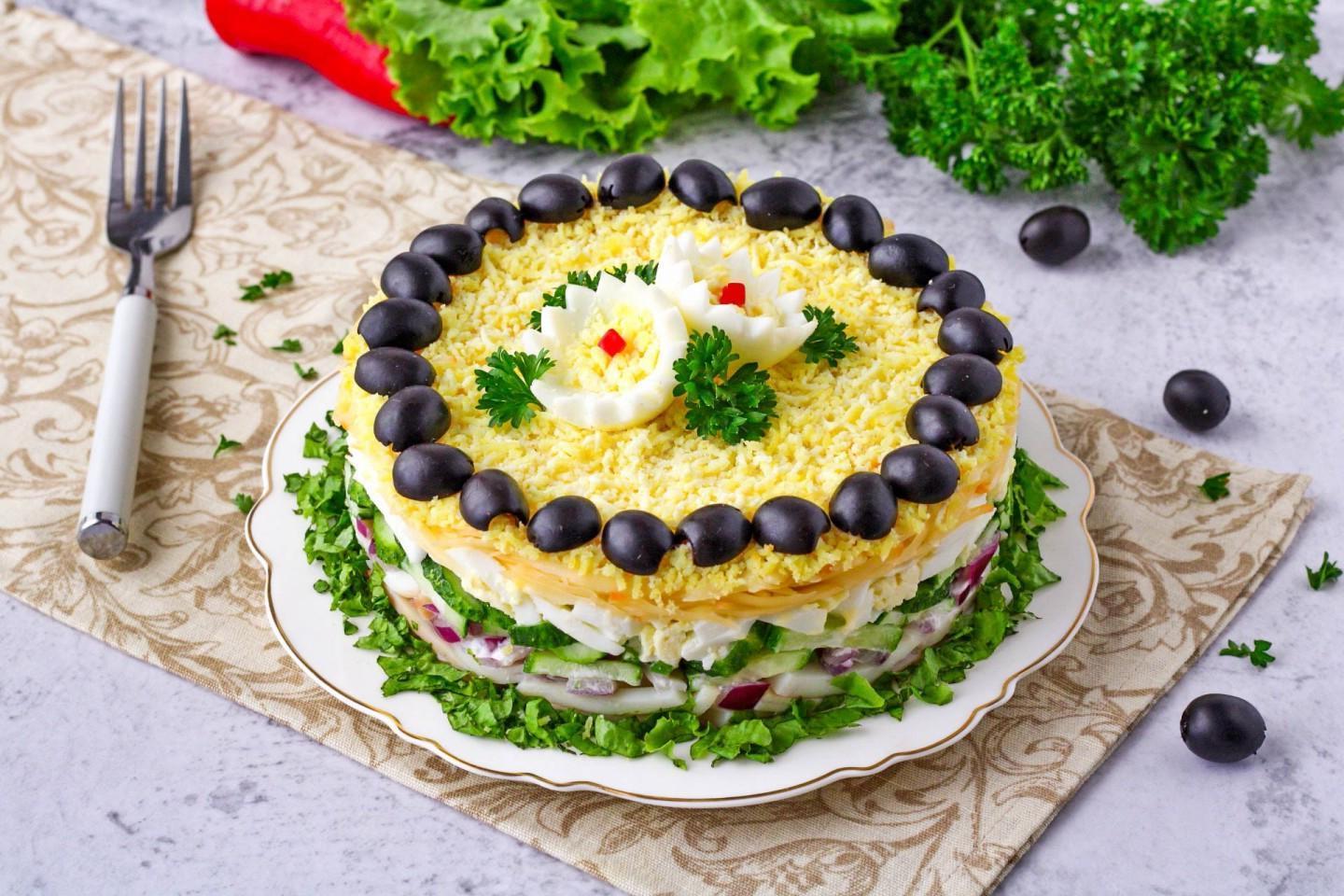 Simple, from affordable products! For holidays and everyday life! Salad with squid, cheese, egg and cucumber is one of the simplest and most affordable. Itʼs very easy to make. Juicy, appetizing, it is eaten as quickly as it is prepared. You can layer the ingredients or mix everything in a salad bowl!