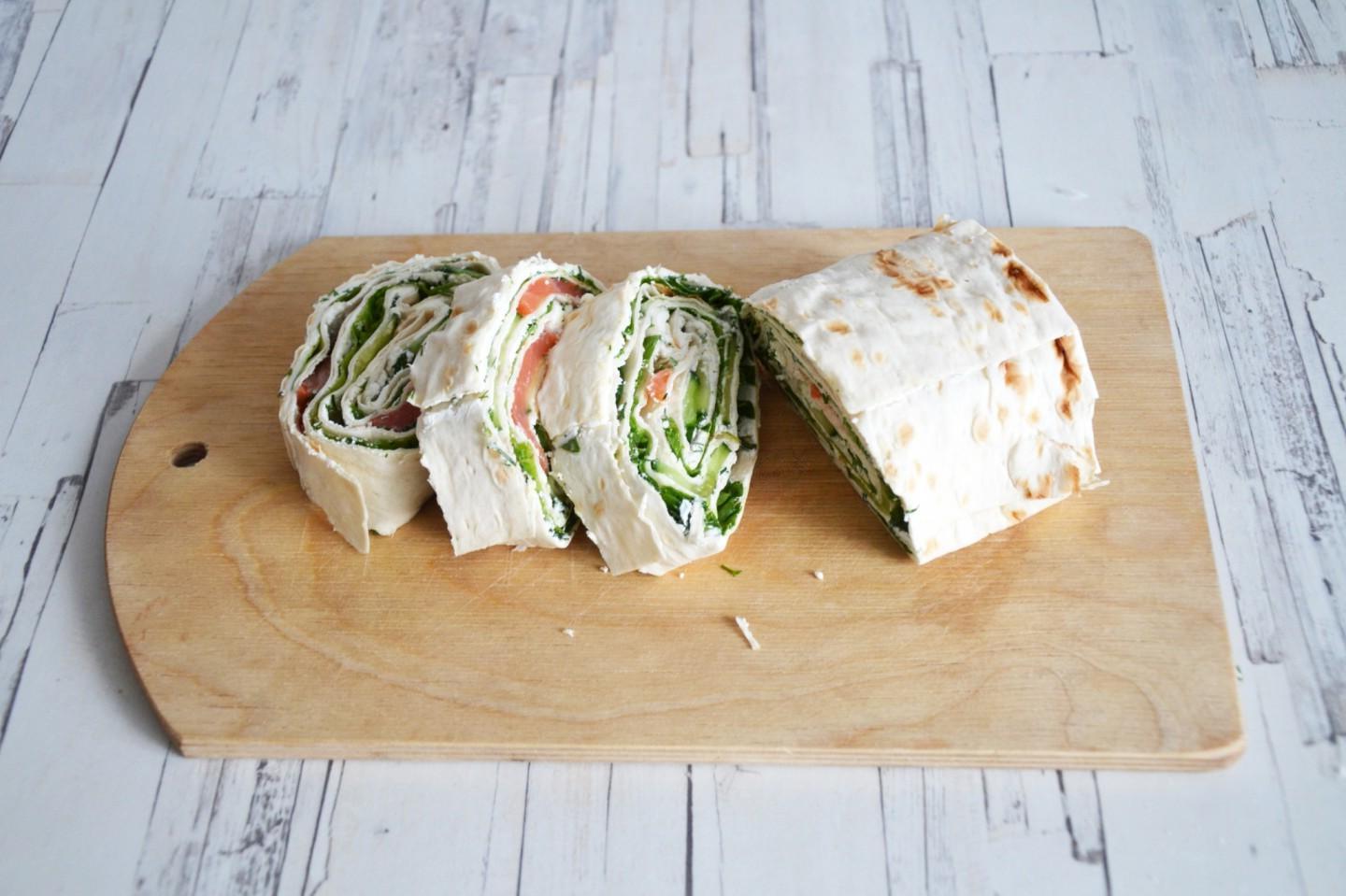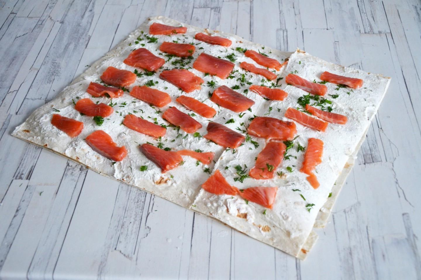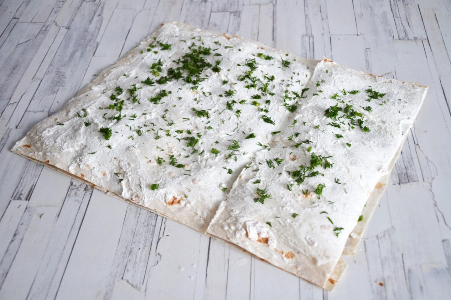Another option for making a lavash roll. Usually pita bread for red fish roll is coated with creamy processed cheese. However, it is no less tasty to prepare such a roll with curd cheese. You can combine these two ingredients and coat one sheet with cottage cheese and the other with cream cheese. In addition to salmon, you can use any other lightly salted red fish.